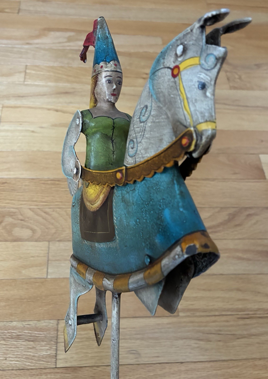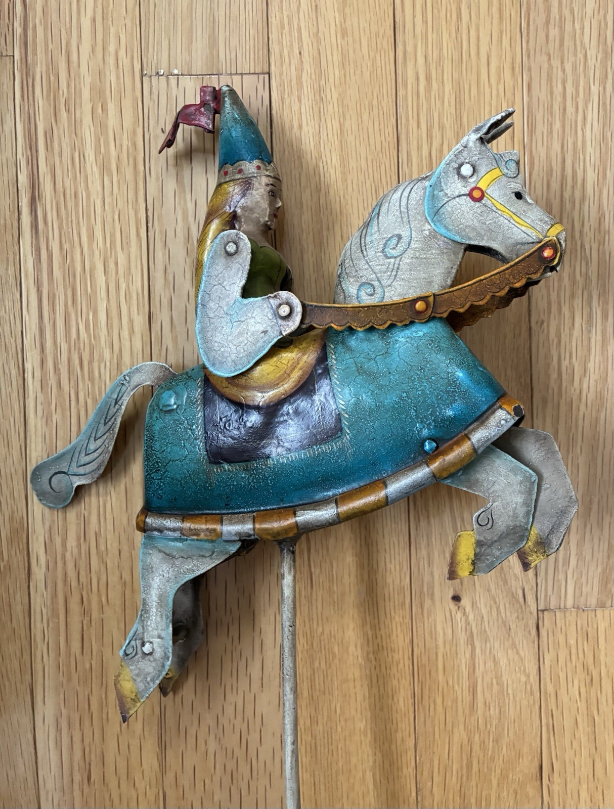 Vintage Medieval Princess On Horse Figure Sky Hook Metal Balance Toy Folk Art