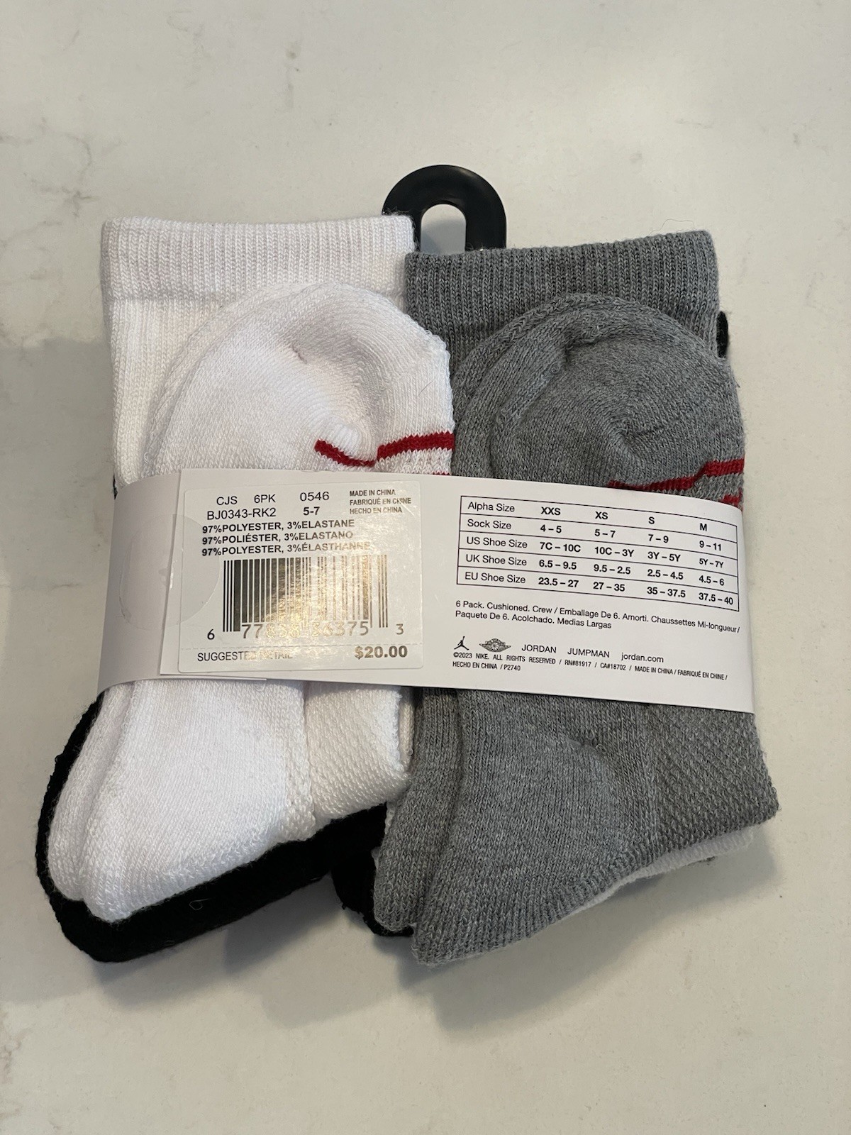 Nike Jordan Boys Socks Crew Jumpman Basketball Youth 6 Prs Shoe Size 5Y-7Y