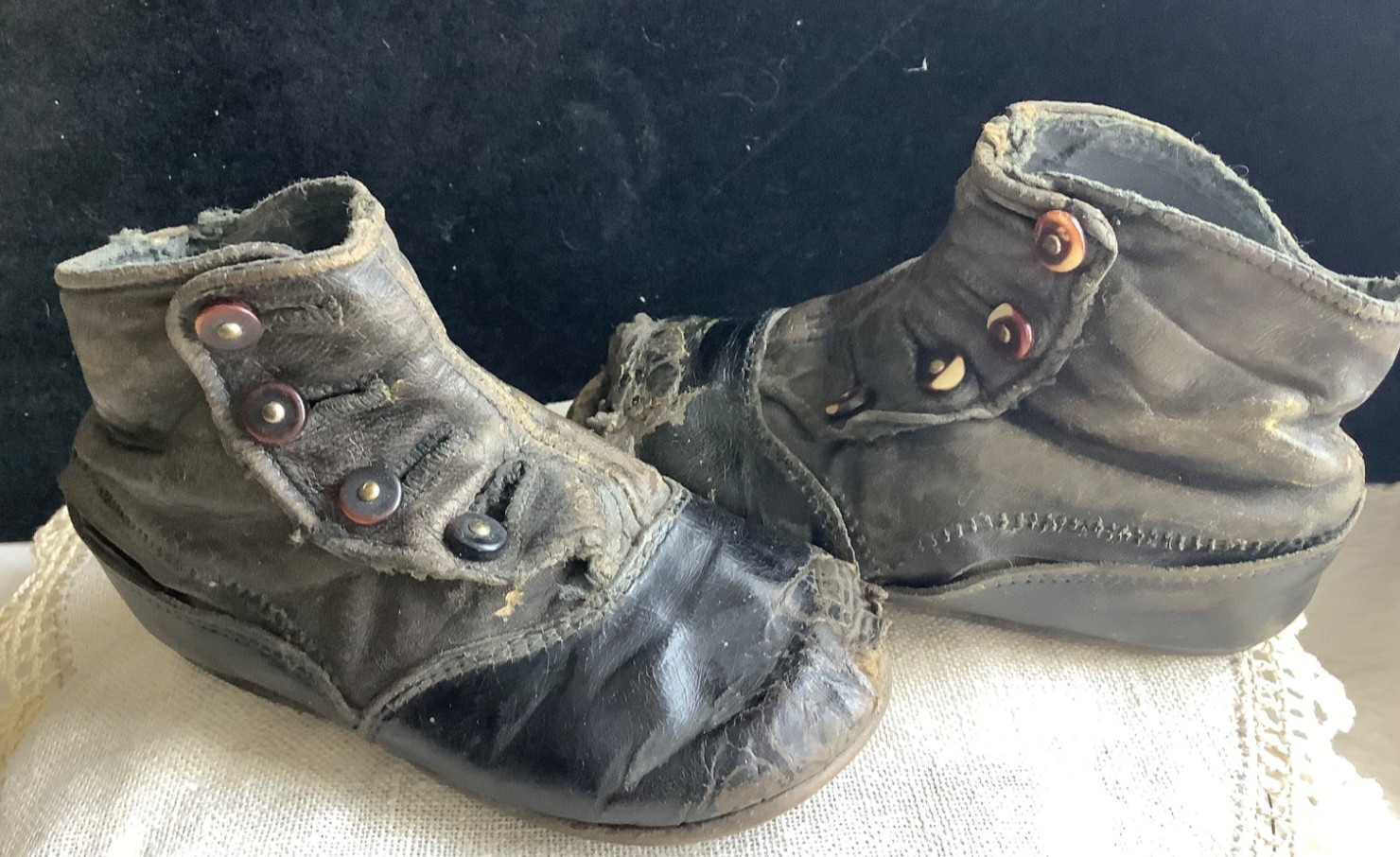 Antique Childs Leather Victorian High Top Button Lace up Shoes 2 Pair