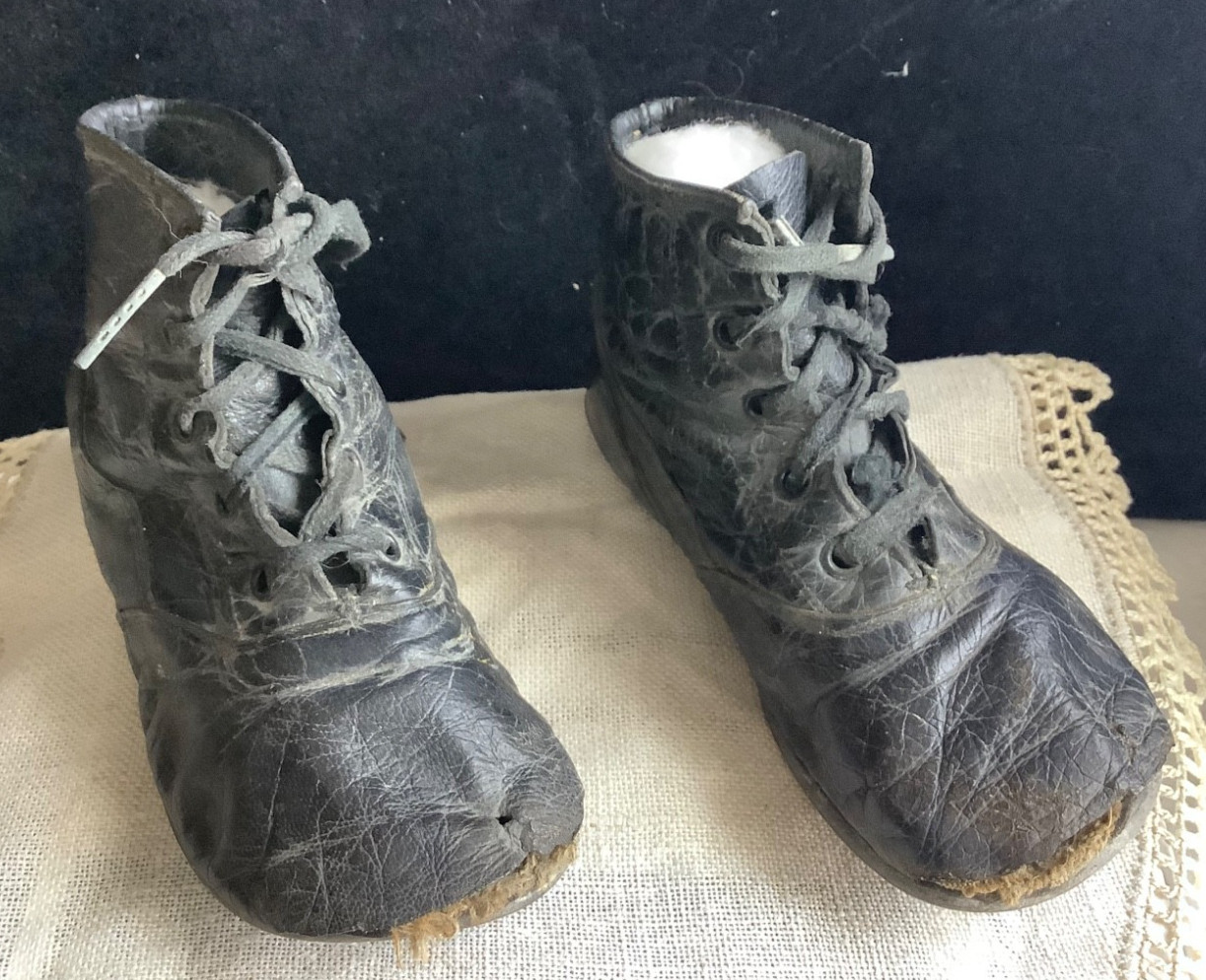 как выглядит Antique Childs Leather Victorian High Top Button Lace up Shoes 2 Pair фото