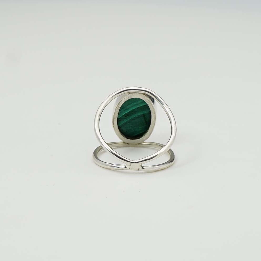 925 Solid Sterling Silver Green Malachite Two Line Ring