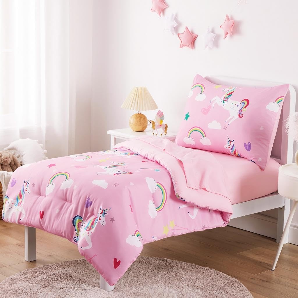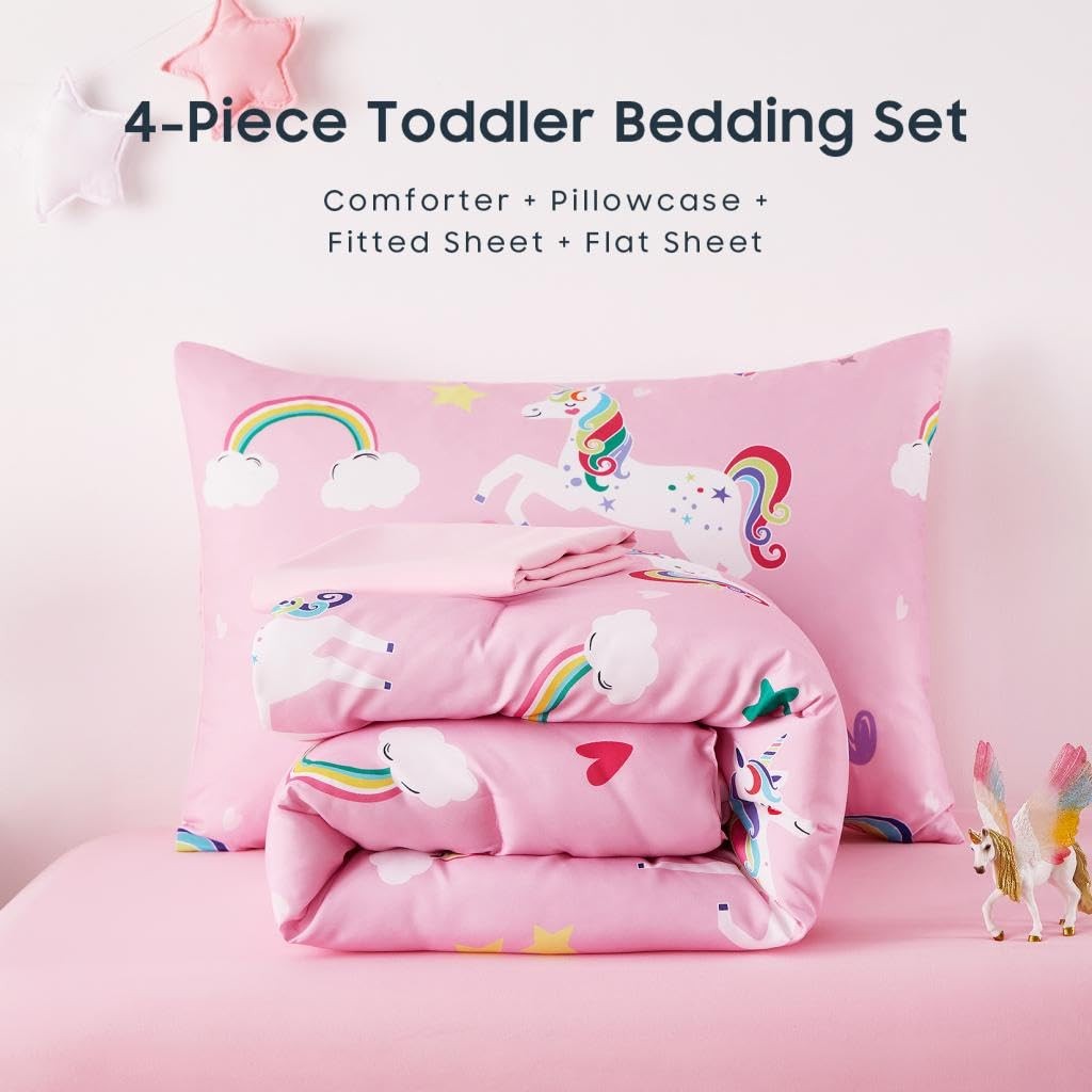 - Unicorn Toddler Bedding Set for Girls, Cute Colorful Unicorn with Rainbow C...