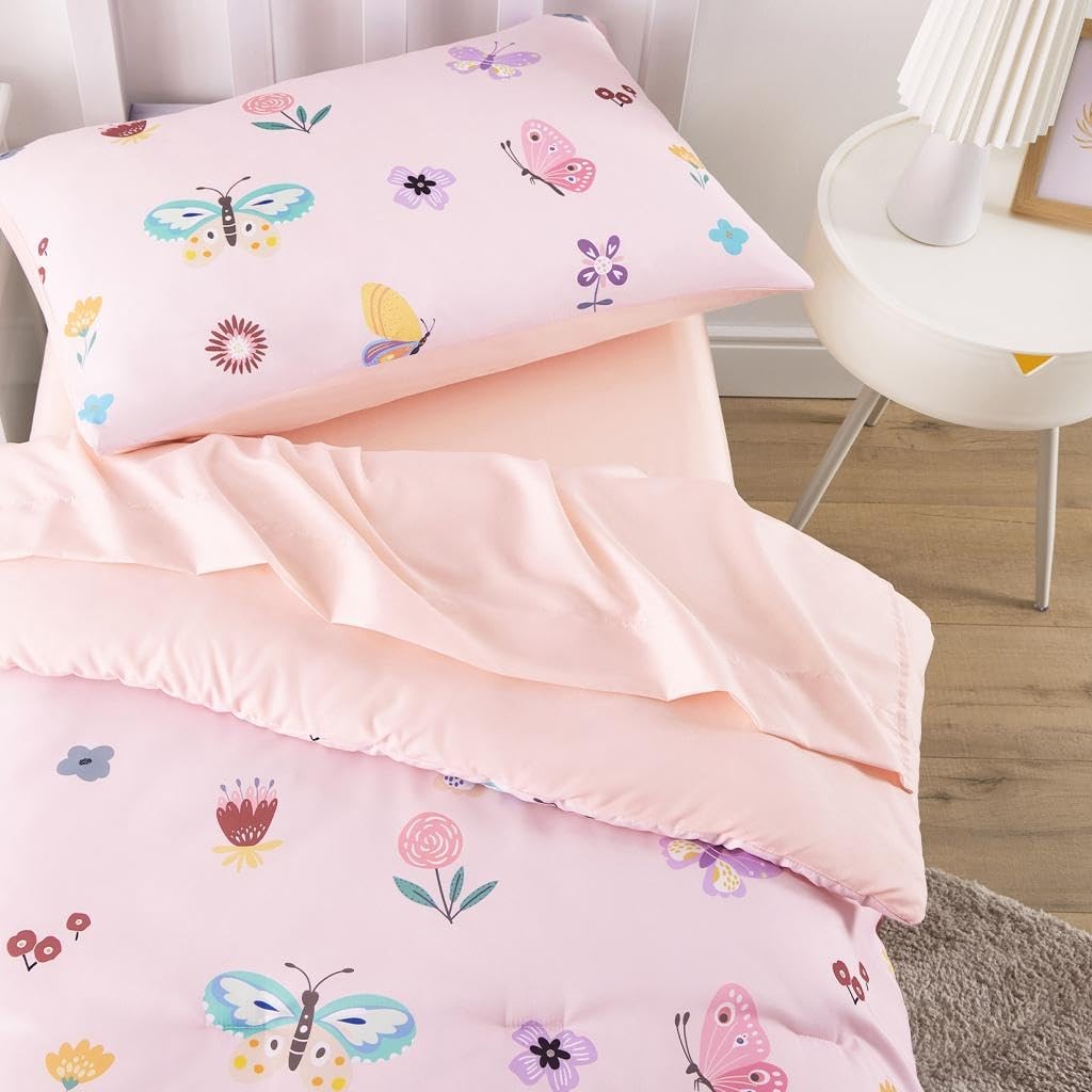 - Butterfly Toddler Bedding Set for Girls, Cute Colorful Butterfly with Flora...