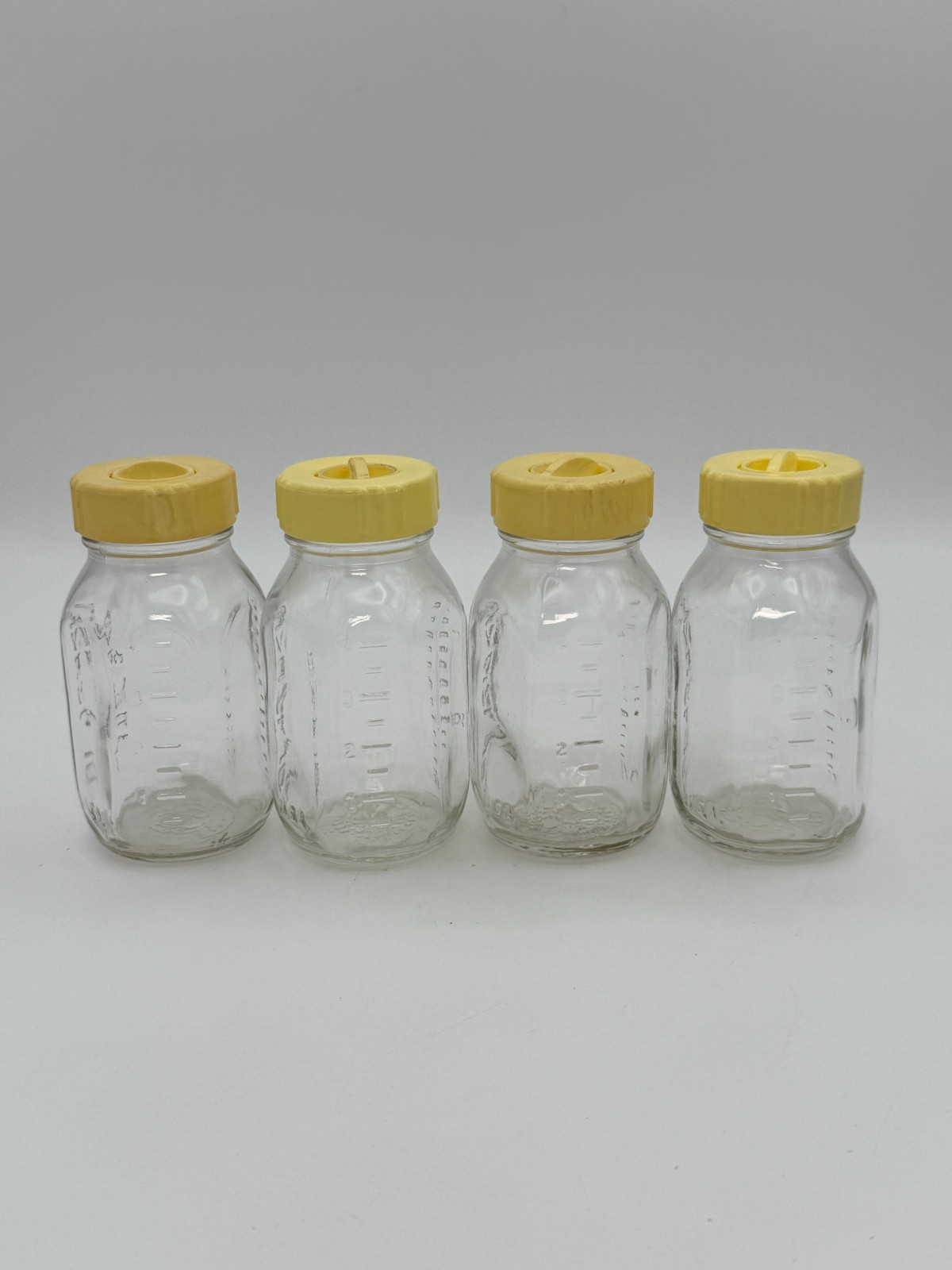 Lot of 4 Vintage 4 oz Evenflo Baby Bottles with Tops No Nipples USA