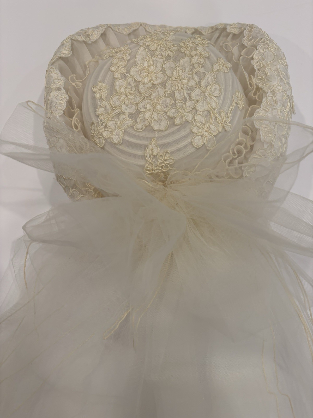 как выглядит VTG 80s Ivory Lace Bridal Hat Tulle Veil Wedding Headpiece Retro Bachelorette Sm фото