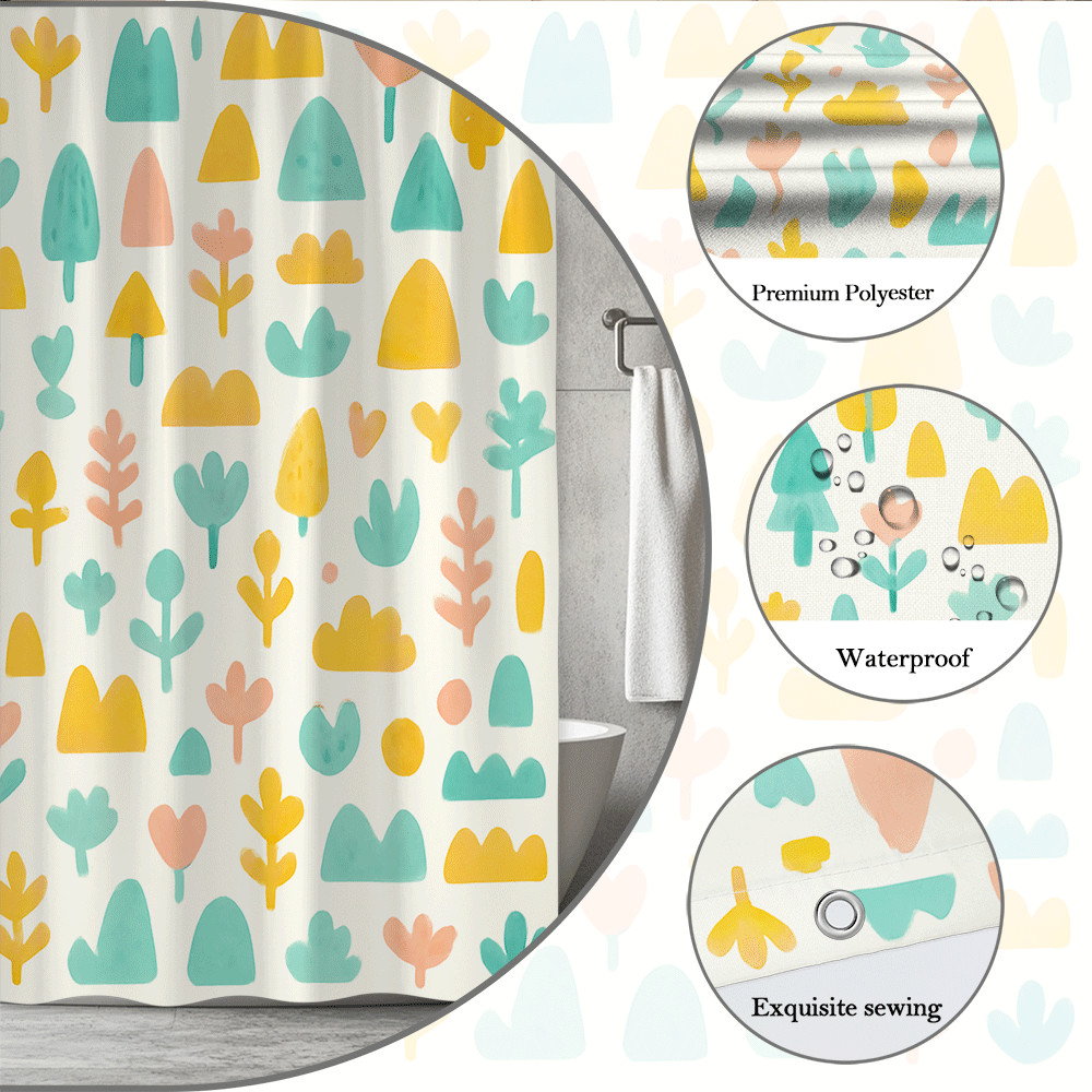 Colorful Modern Floral Shower Curtain for Kids Bathroom Decor