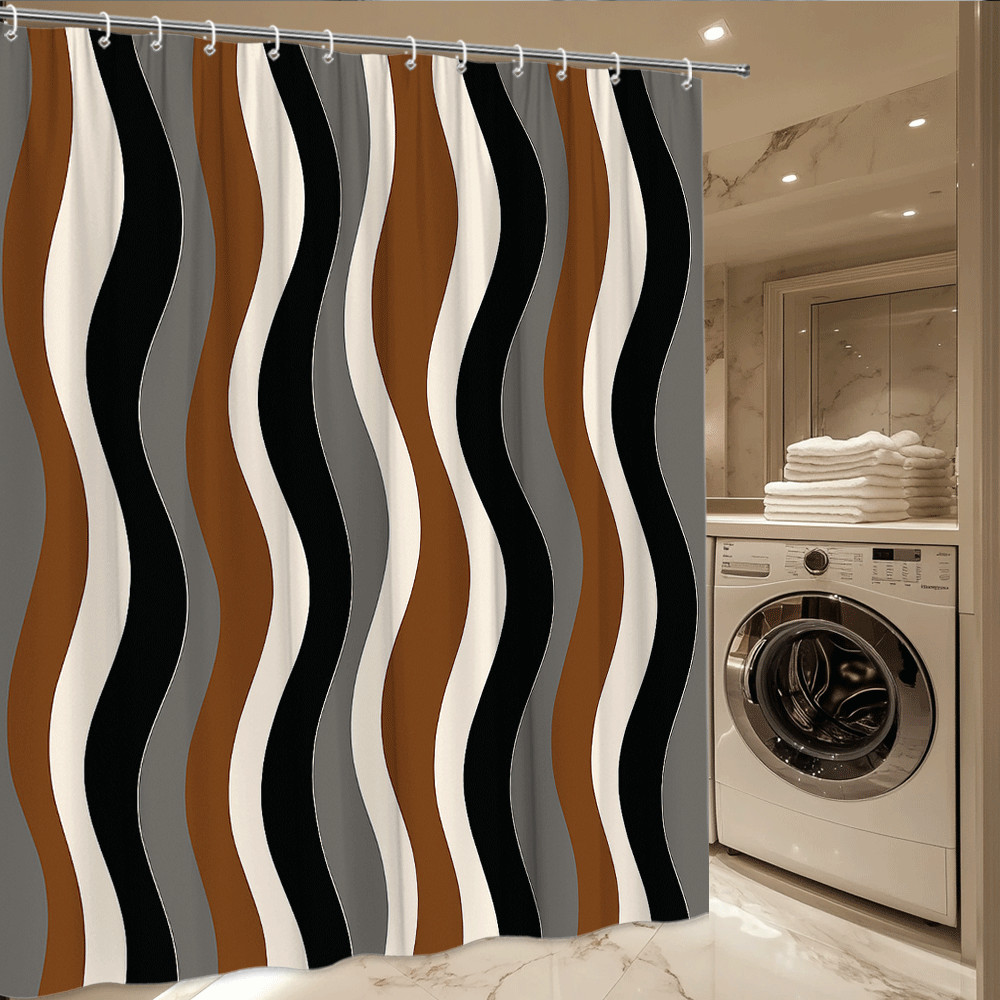 Modern Brown and Black Shower Curtain with Wavy Pattern