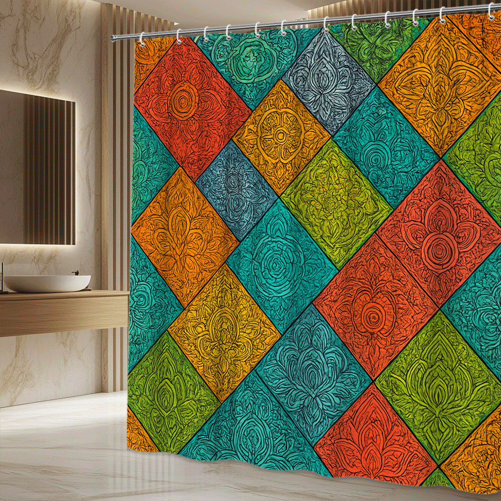 Colorful Geometric Shower Curtain for Unique Bathroom Decor