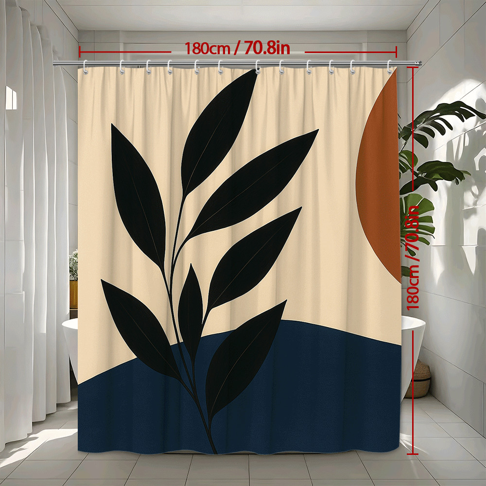Modern Black and White Shower Curtain with Leaf and Sun Design