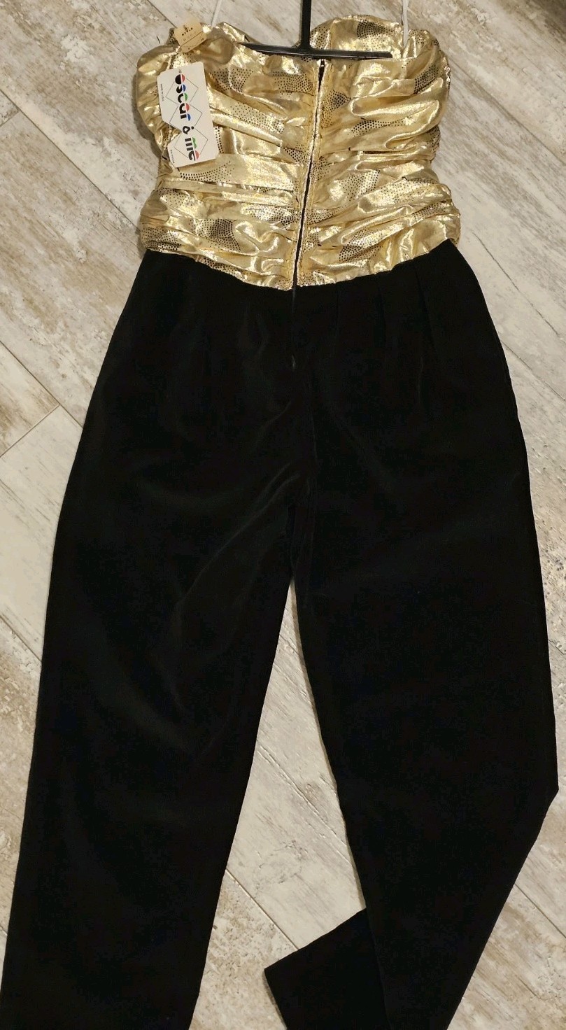 Vintage 80s Oscar Me Gold Metallic Jumpsuit NWT Womens Party USA Deadstock