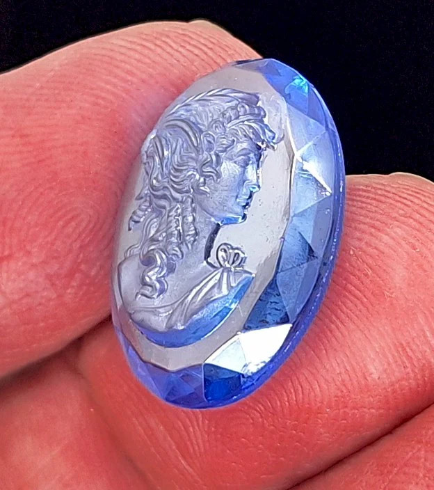 как выглядит 25x18mm Vintage German Faceted Blue Glass Woman Cameo Cabochon J138 фото