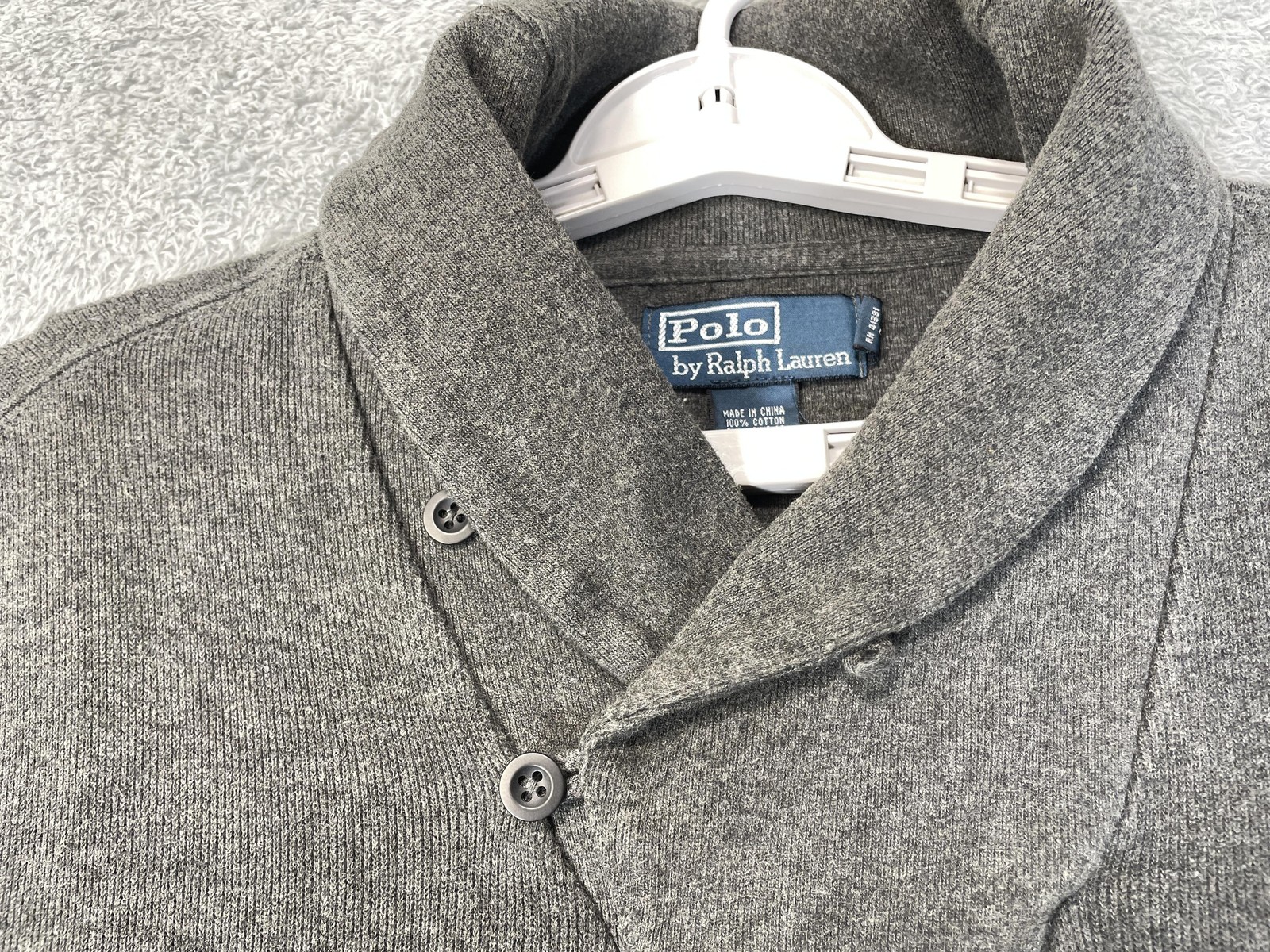 Polo Ralph Lauren Sweater Mens Large Gray Shawl Collar Pullover Cotton Knit