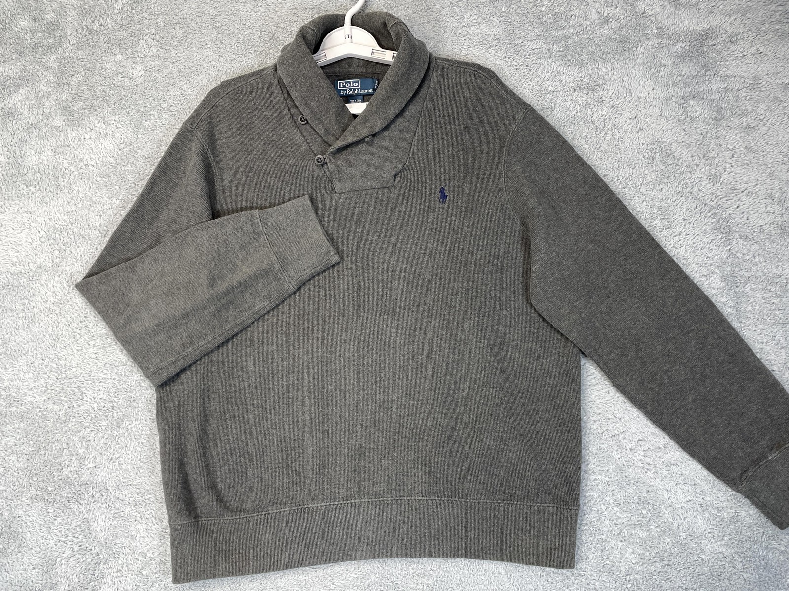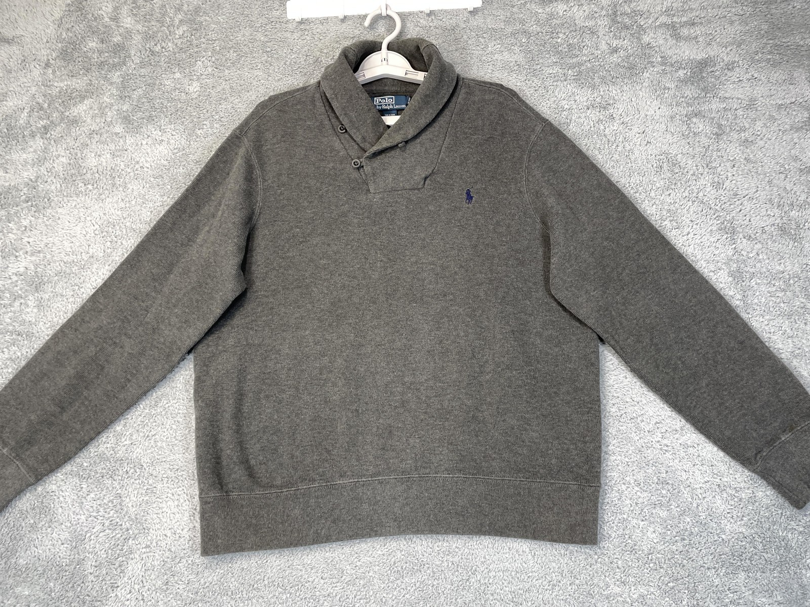 как выглядит Polo Ralph Lauren Sweater Mens Large Gray Shawl Collar Pullover Cotton Knit фото