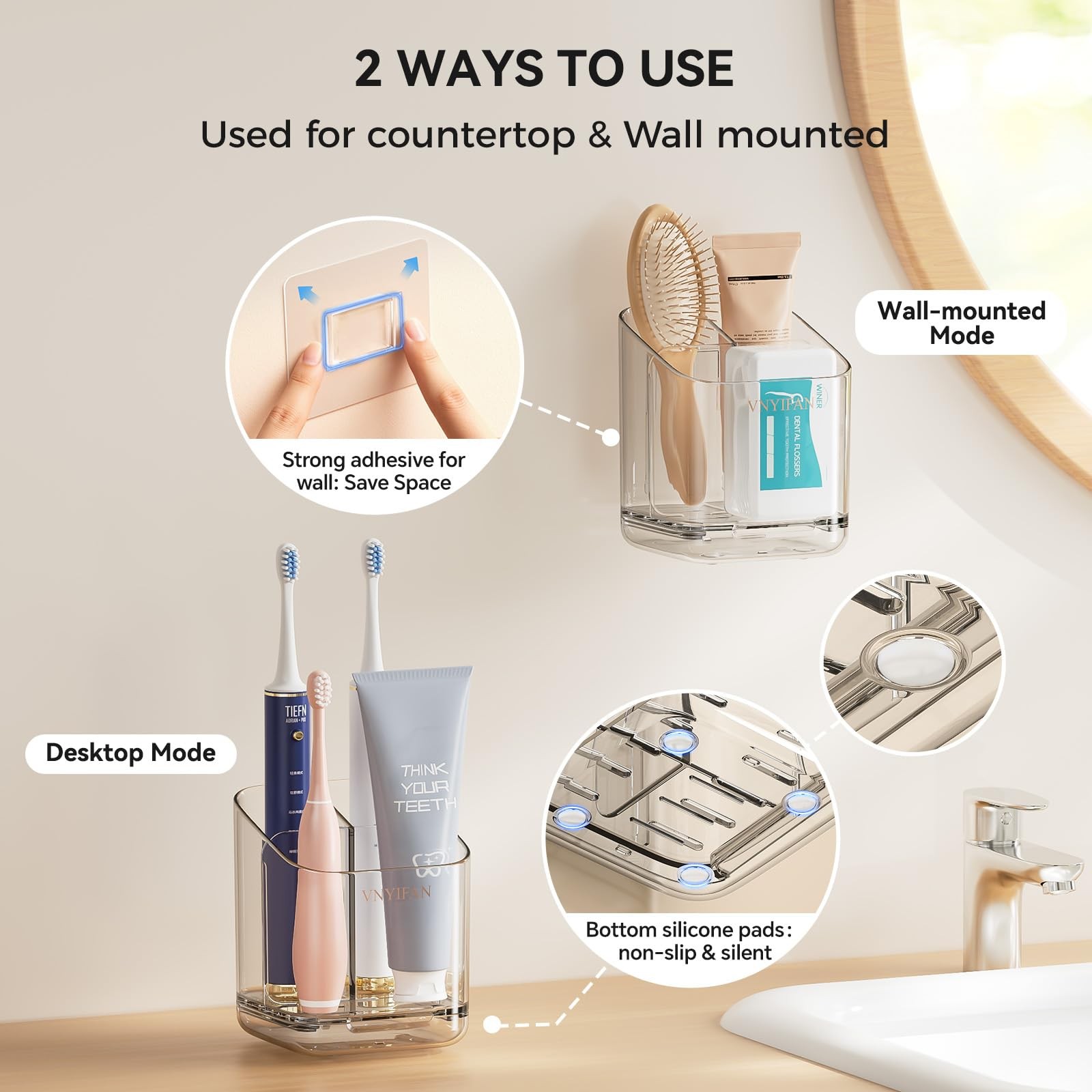 Toothbrush Holders for Bathrooms, 3 Slots Detachable Toothbrush Holder Wall M...