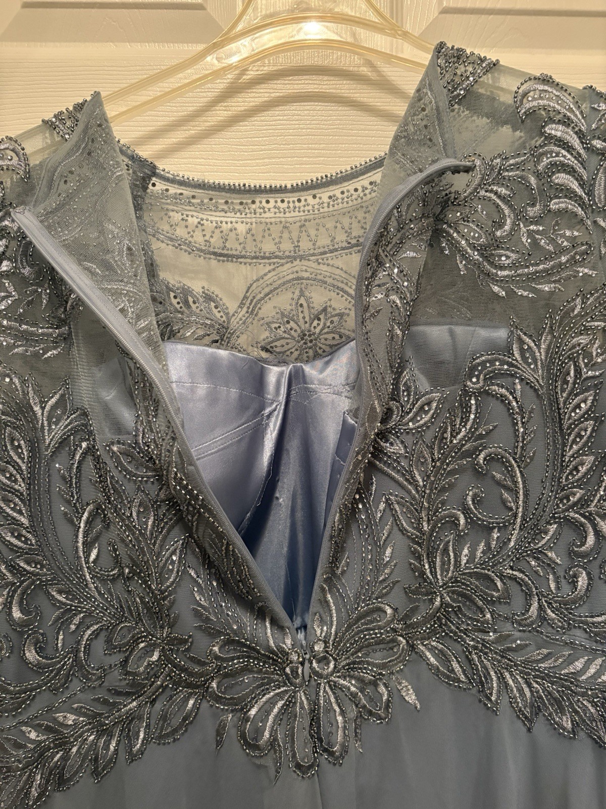 как выглядит MGNY Mother Of The Bride Gown Size 20 Plus Size Slate Blue фото