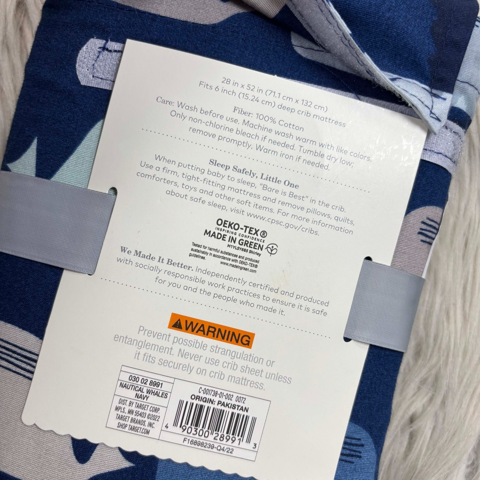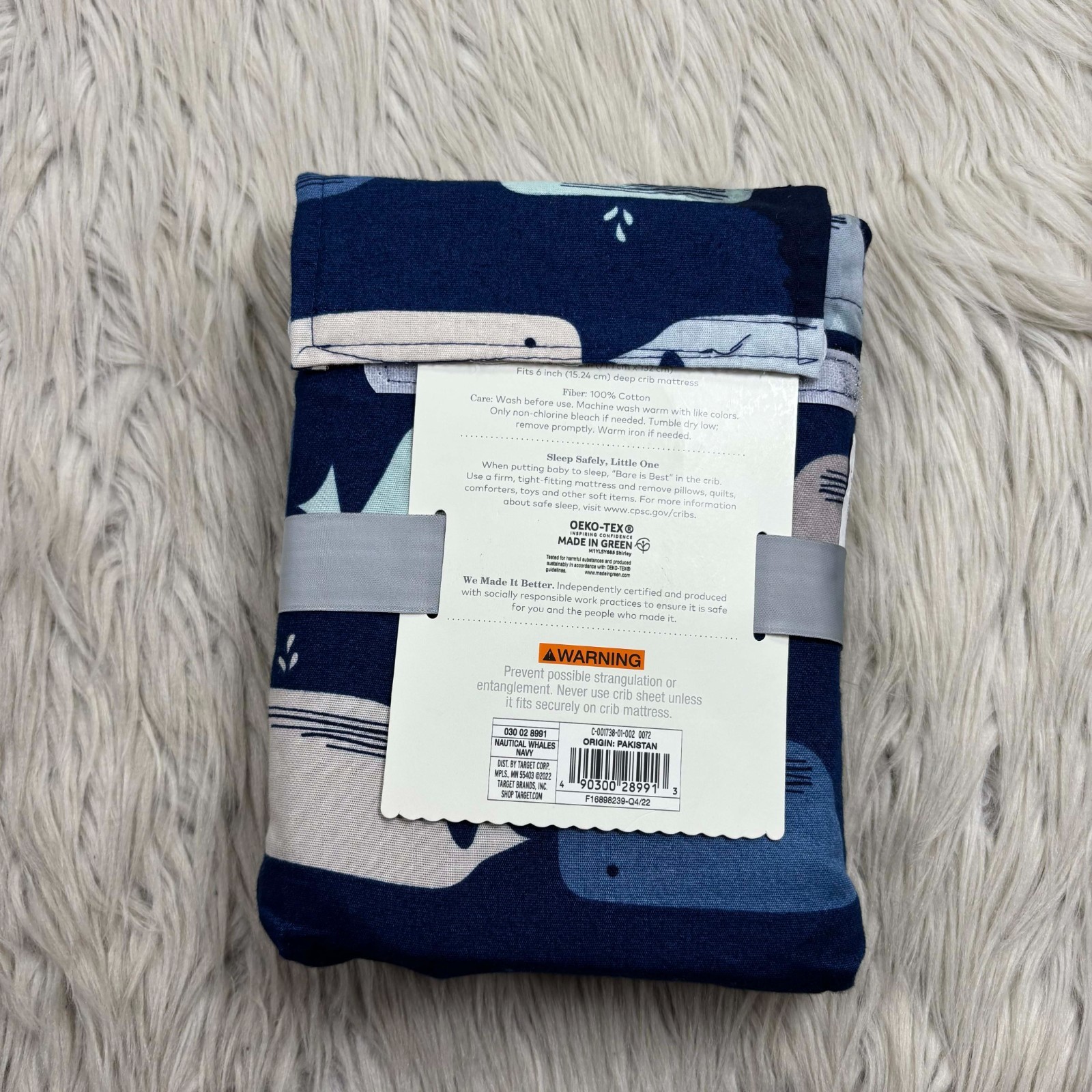 как выглядит NEW Cloud Island Fitted Crib Sheet 100 Cotton Navy Blue Gray Whale Print фото