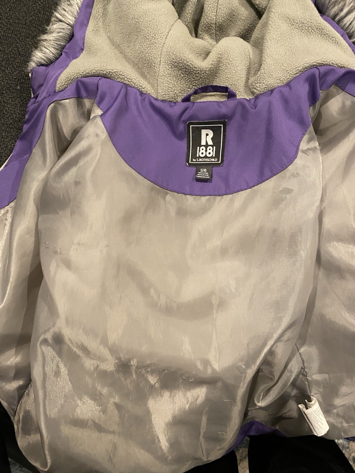 как выглядит Rothschild Girls Purple Puffer Coat with Faux Fur Trim Size 5/6 фото