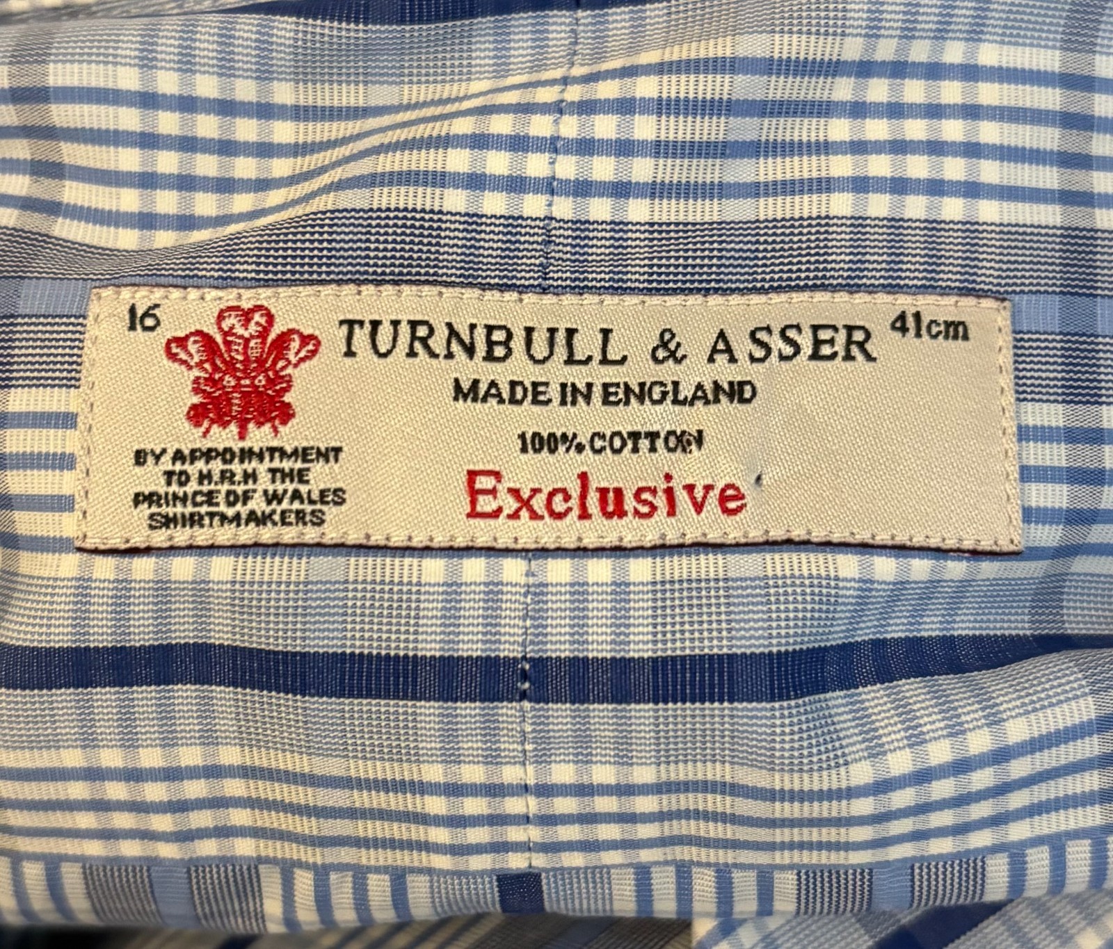 Turnbull Asser Exclusive Blue Plaid Dress Shirt size: 16/41cm