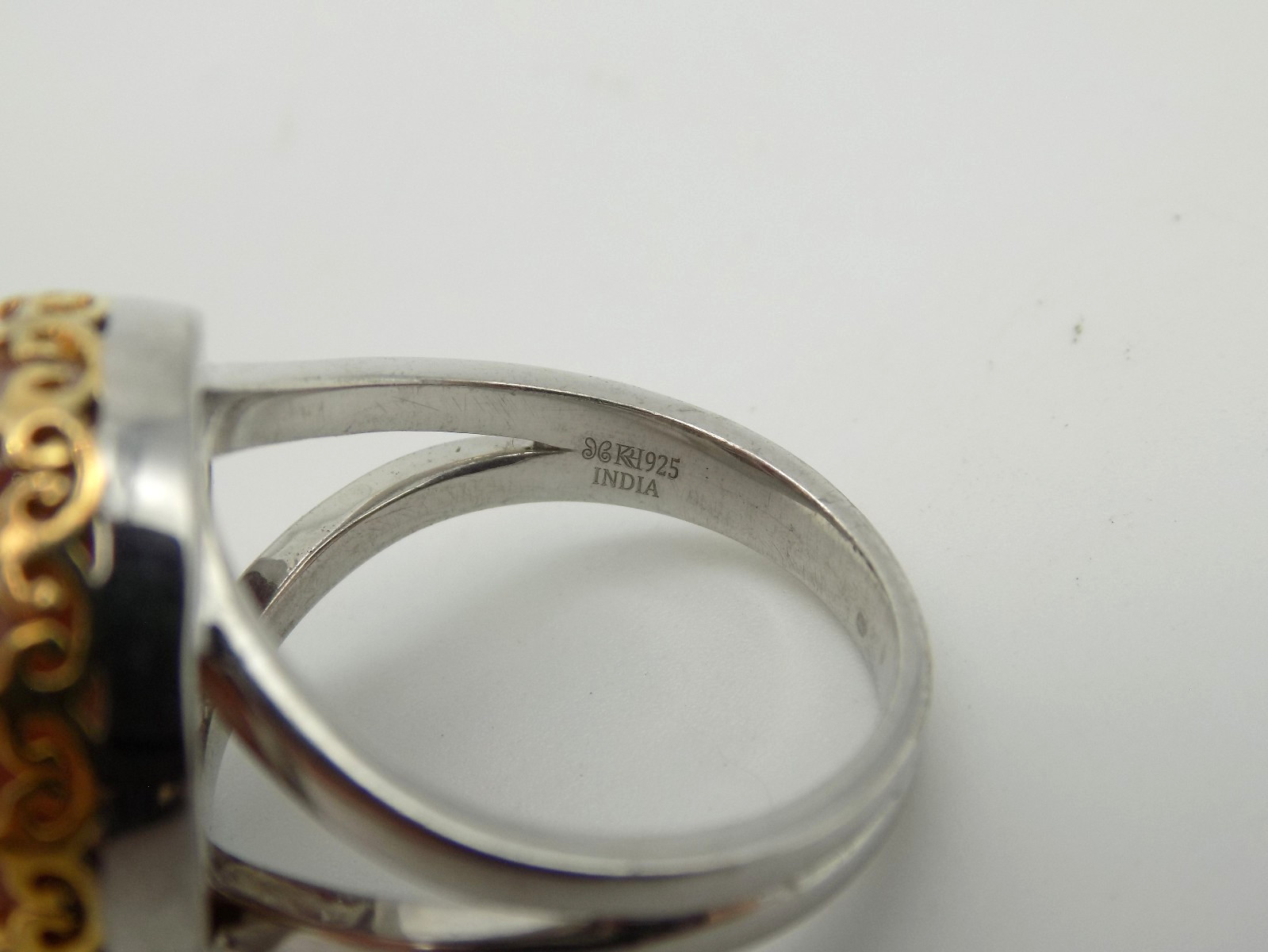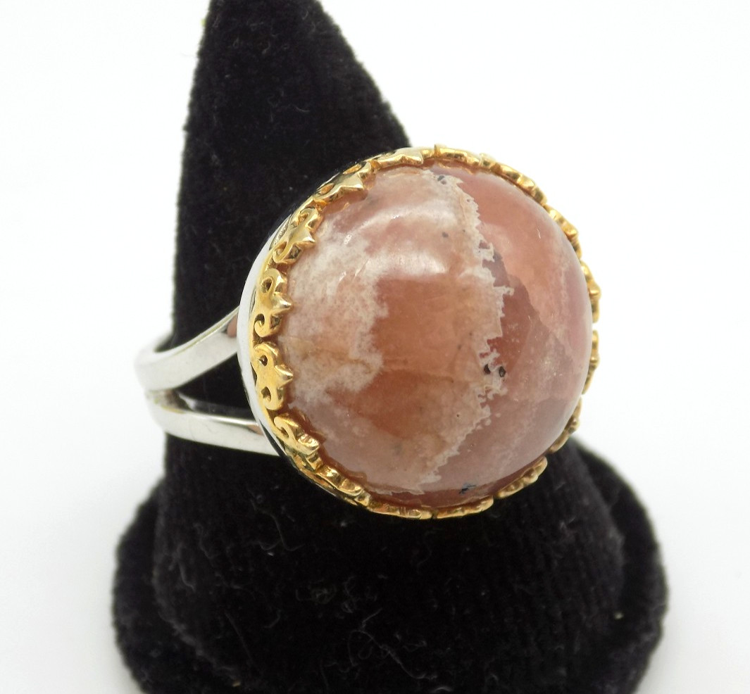 как выглядит Signed Sterling Silver Pink Rhodochrosite Cabochon Ring Sz 8.25 фото