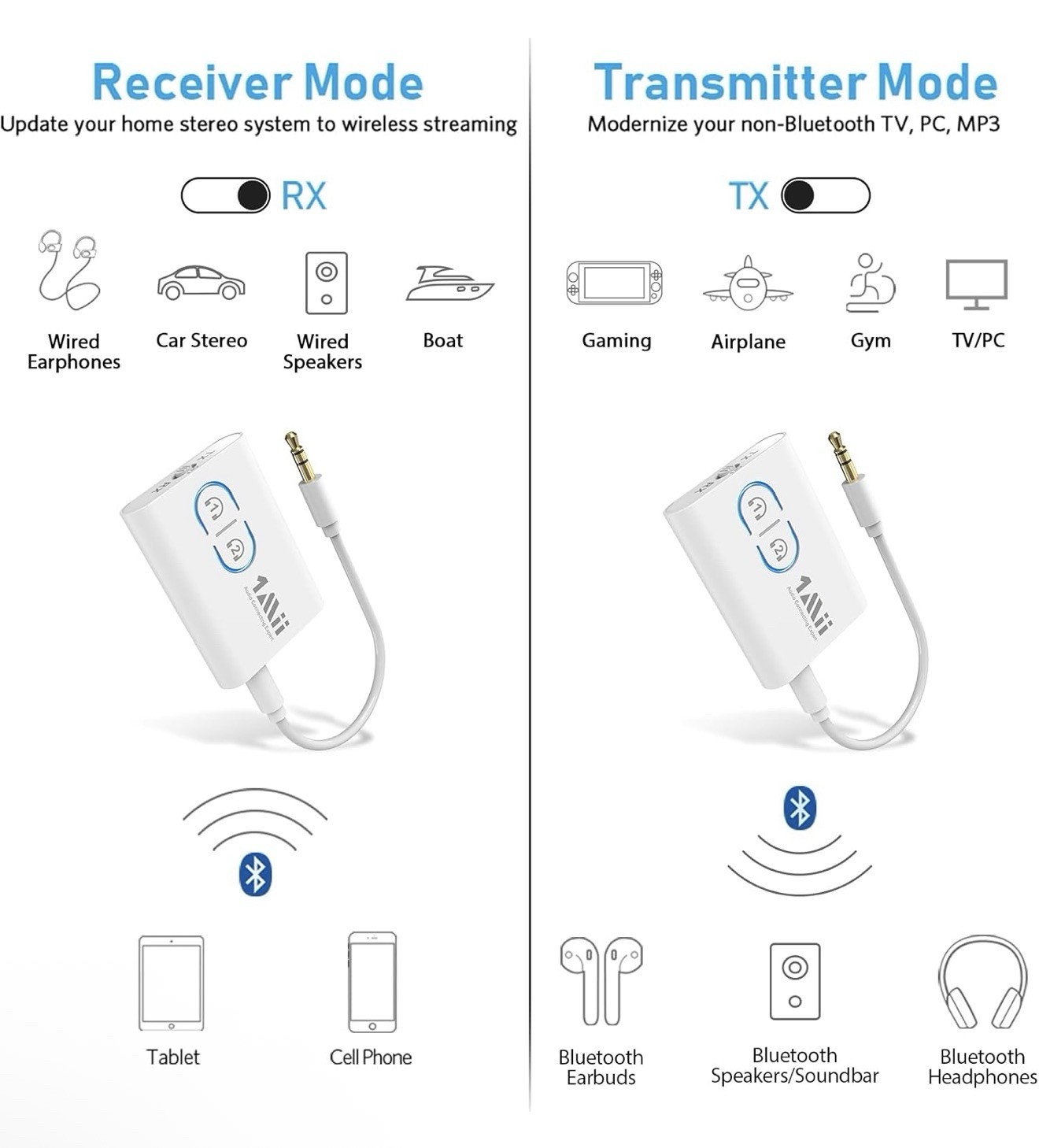 1Mii Bluetooth 5.3 Transmitter Receiver for TV to Wireless Headphones AUX / RCA