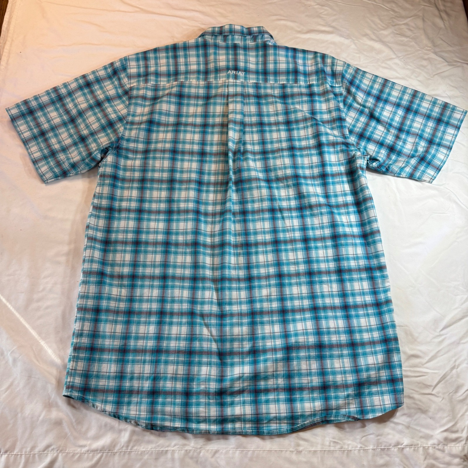 как выглядит Ariat Pro Series Short Sleeve Plaid Button Down Shirt Mens Size LT Western фото