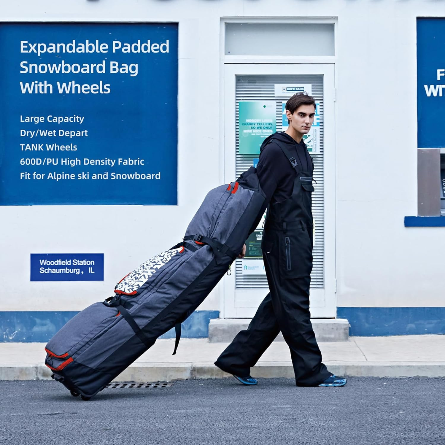 Padded Snowboard Bag with Wheels, Extendable Roller Ski Bag for Air Traveling Ad