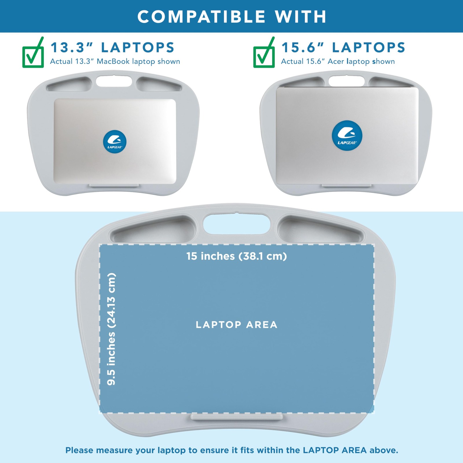 Lap Desk with Device Ledge Holder Fits 15.6in Laptops Cool Gray