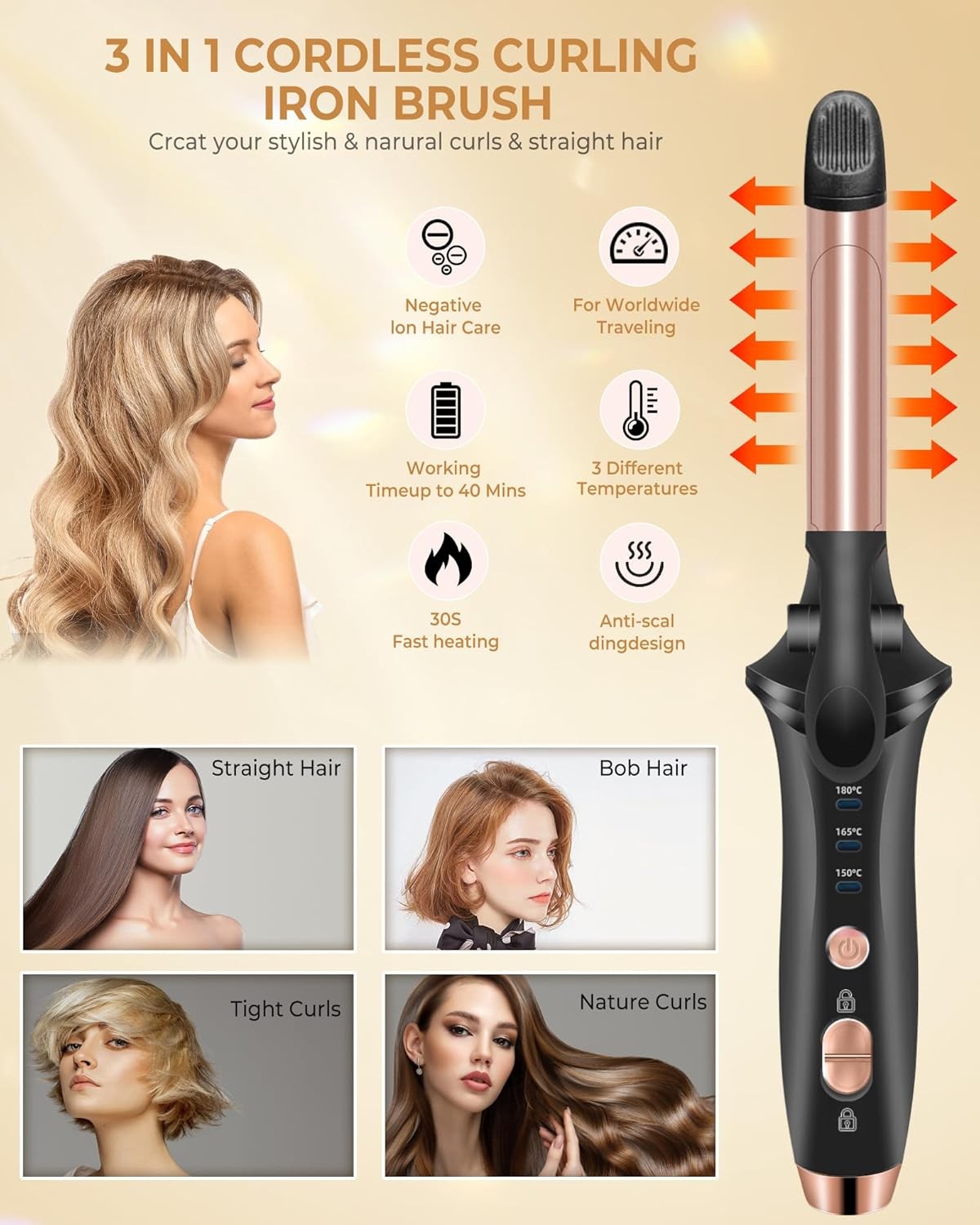 Cordless Curling Iron Rechargeable,USB Rechargeable 4000 mAh Cordless Hair Curle