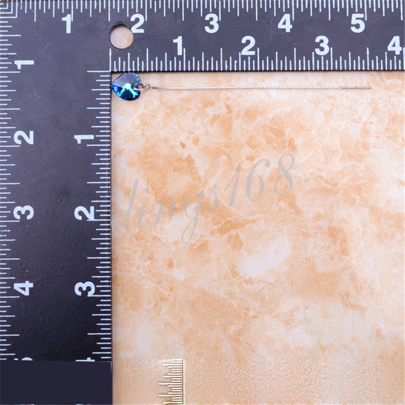 как выглядит 925 Sterling Silver Tarnish-Free Blue Crystal Heart Long Threader Earrings X1260 фото