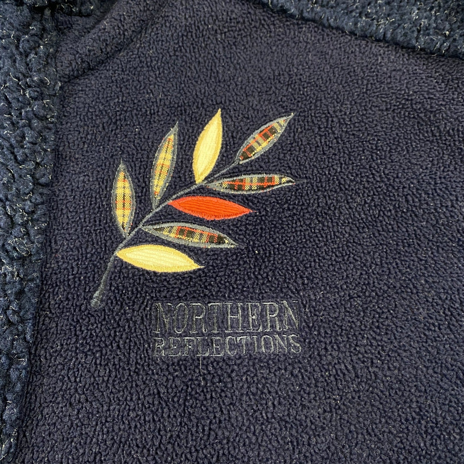 VTG Northern Reflections Fleece Jacket Cabincore Navy Leaf Embroidery Full Zip