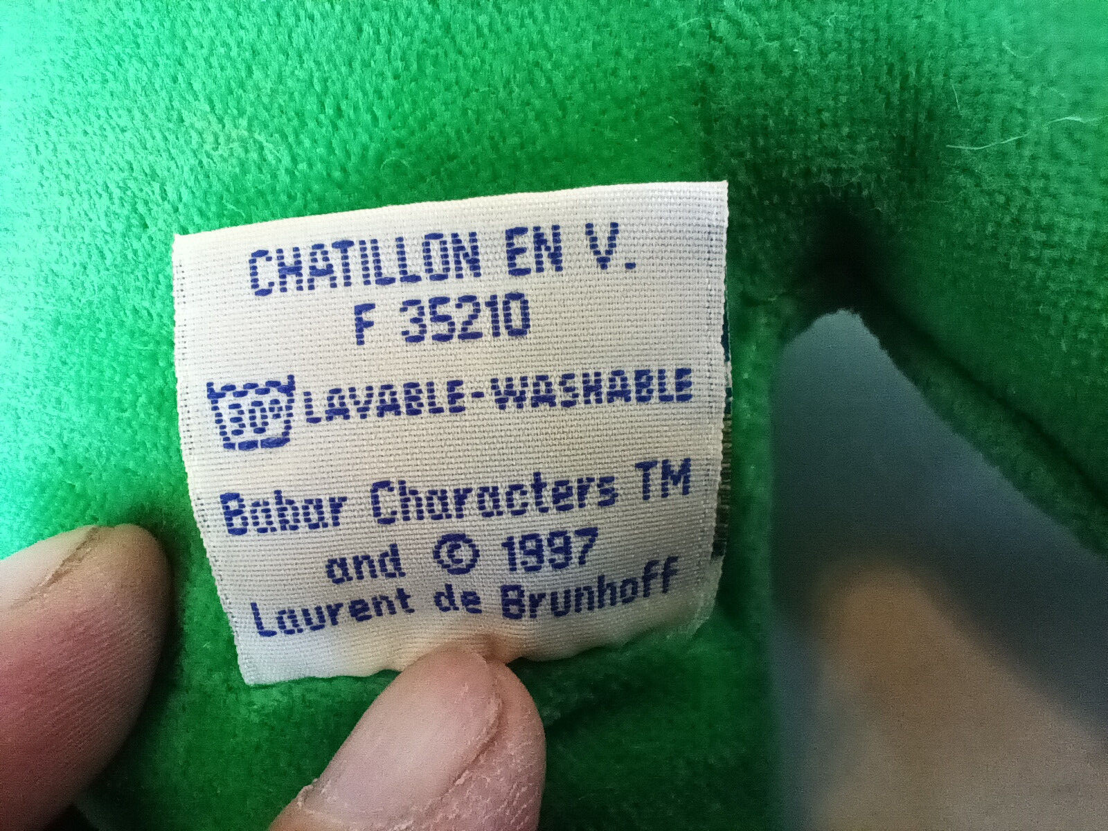 Vintage Babar the Elephant Plush Toy 1997 AJENA 10 Green Suit Made in France