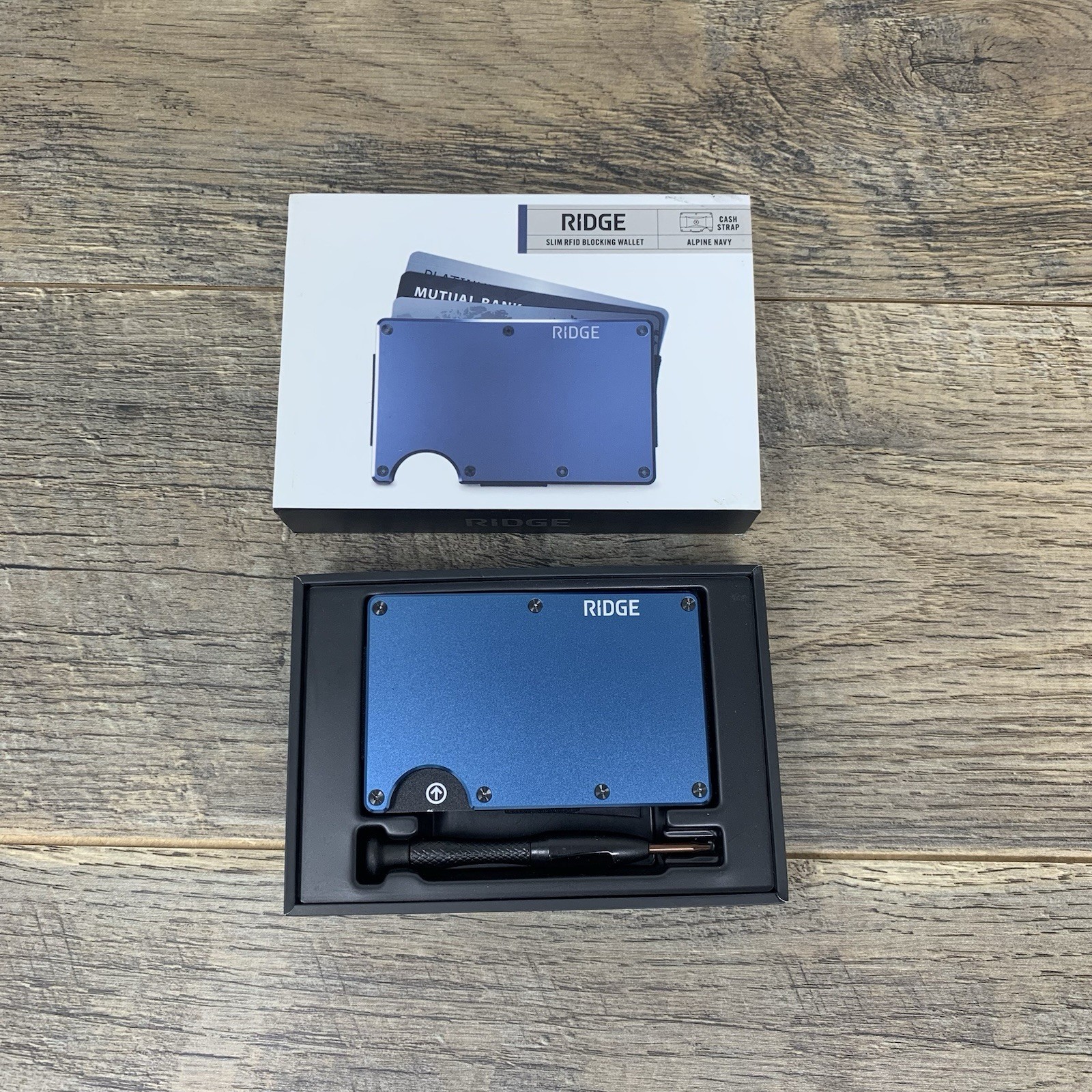 The Ridge Wallet Aluminum With Cash Strap Alpine Navy New