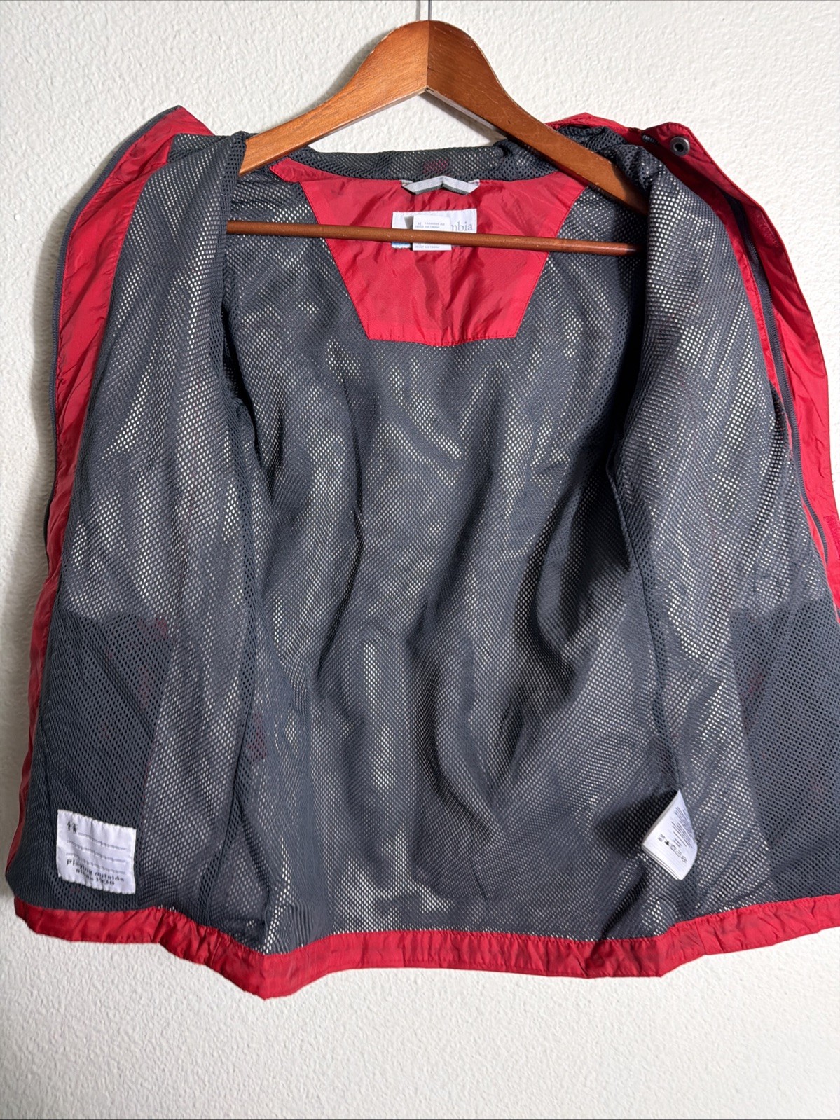 Columbia Youth Omni-tech Watertight Hooded Jacket Red Medium 10/12 Full Zip