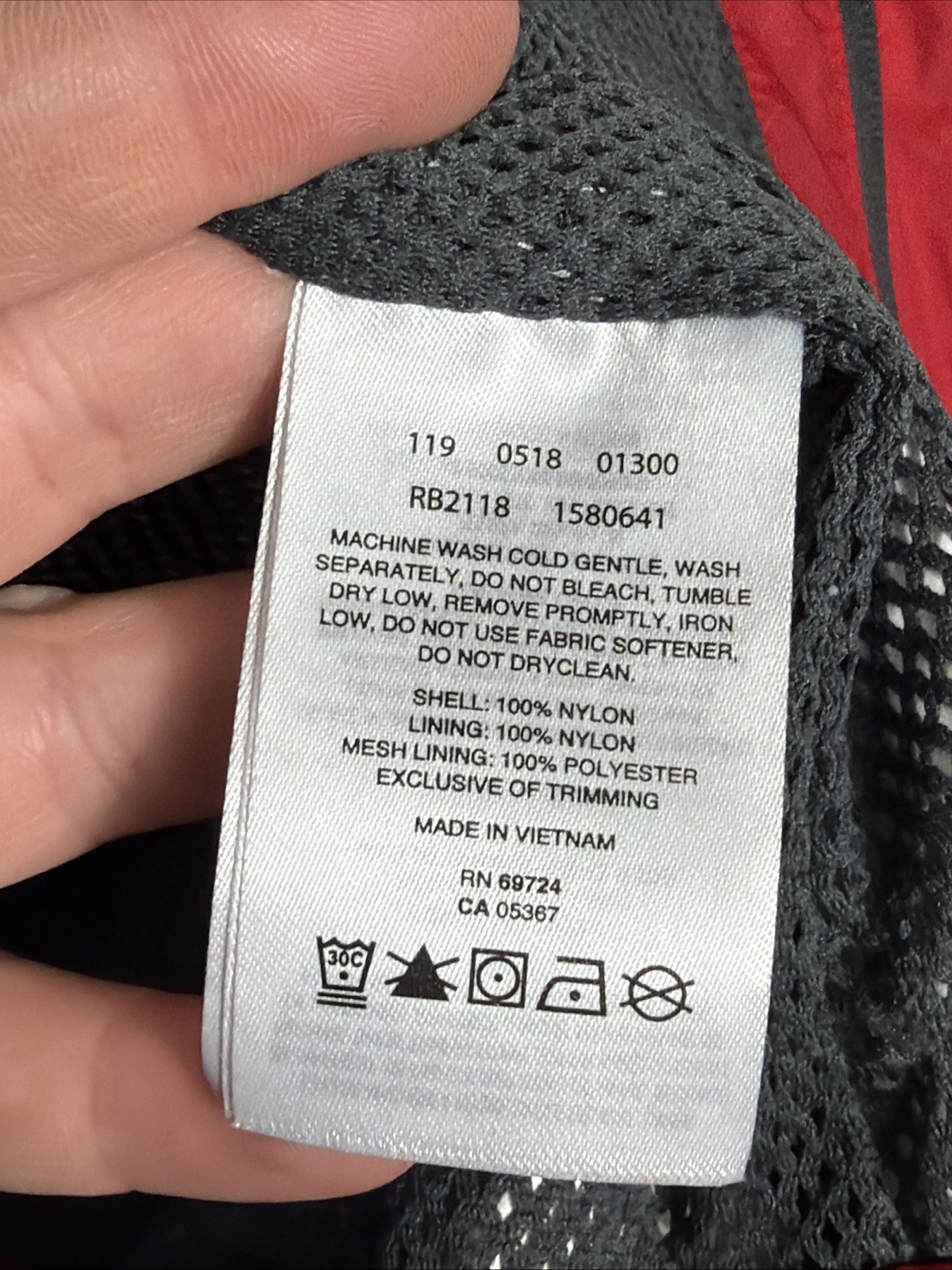 Outer Shell Material: 100% Nylon
