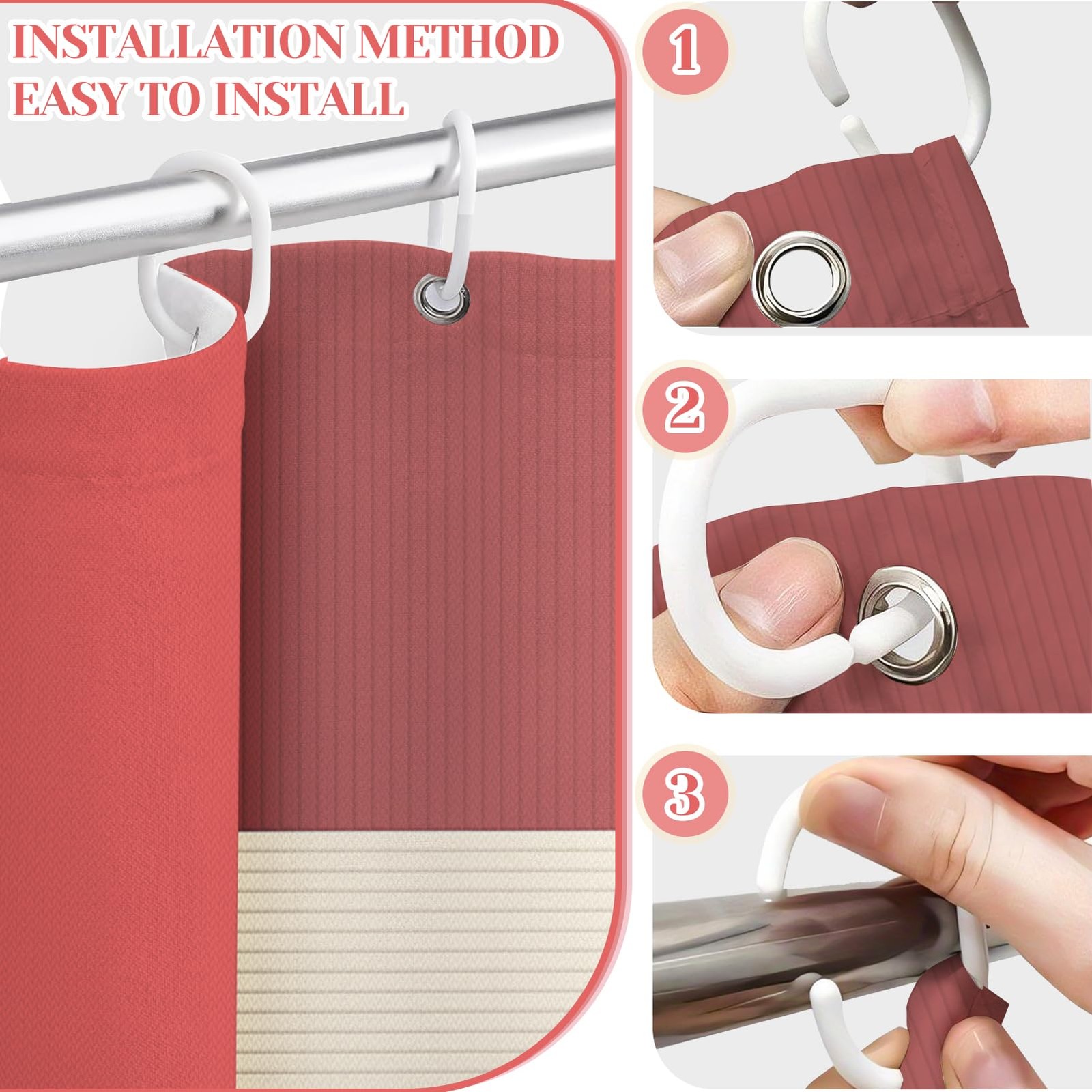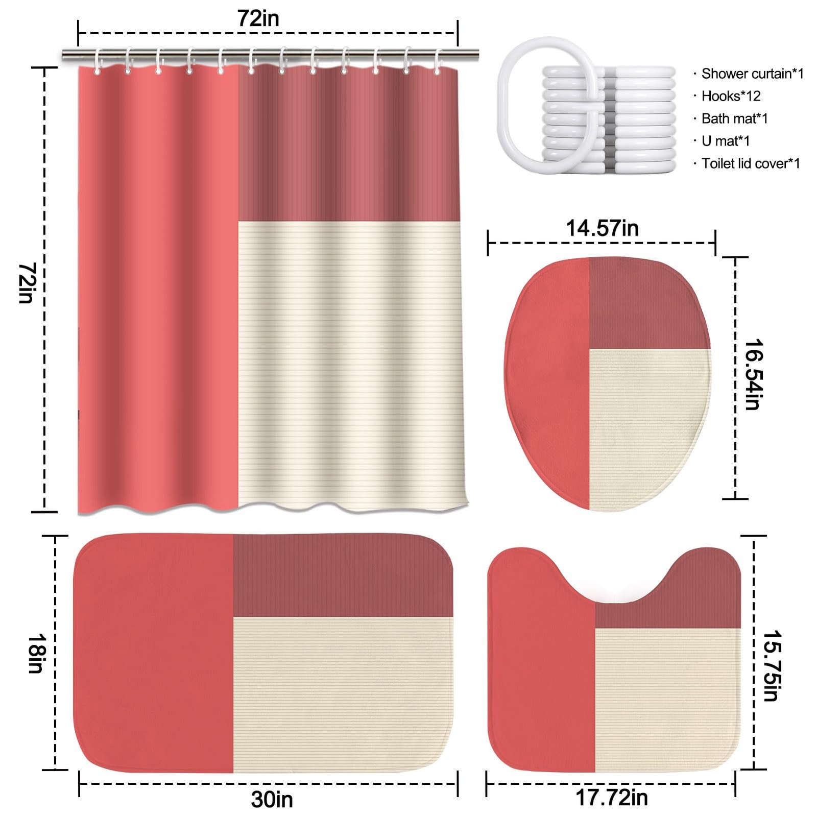 4 Piece Modern Bathroom Set Red Beige Shower Curtain Non-Slip Rugs Decor