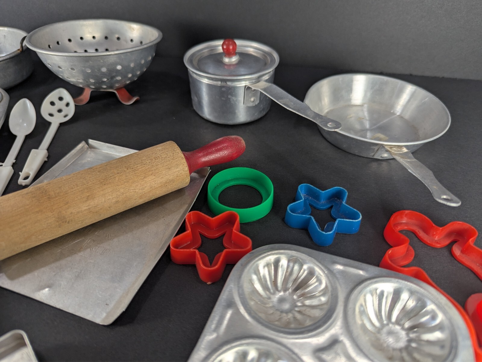 Vintage Lot Children's Play Kitchen Pots Pans Bakeware Toys Aluminum Tin