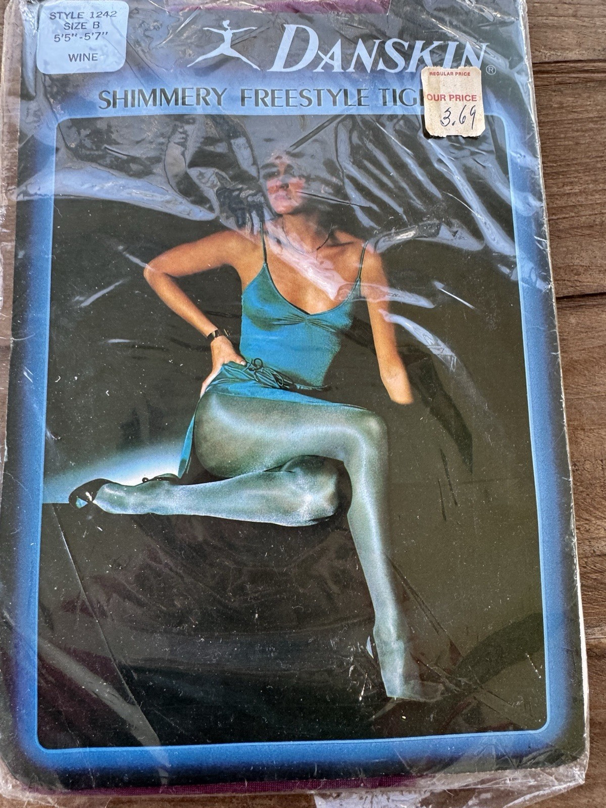 Vintage Danskin Shimmery Freestyle Tights 1242 B Wine Purple 5'5-5'7 1980's