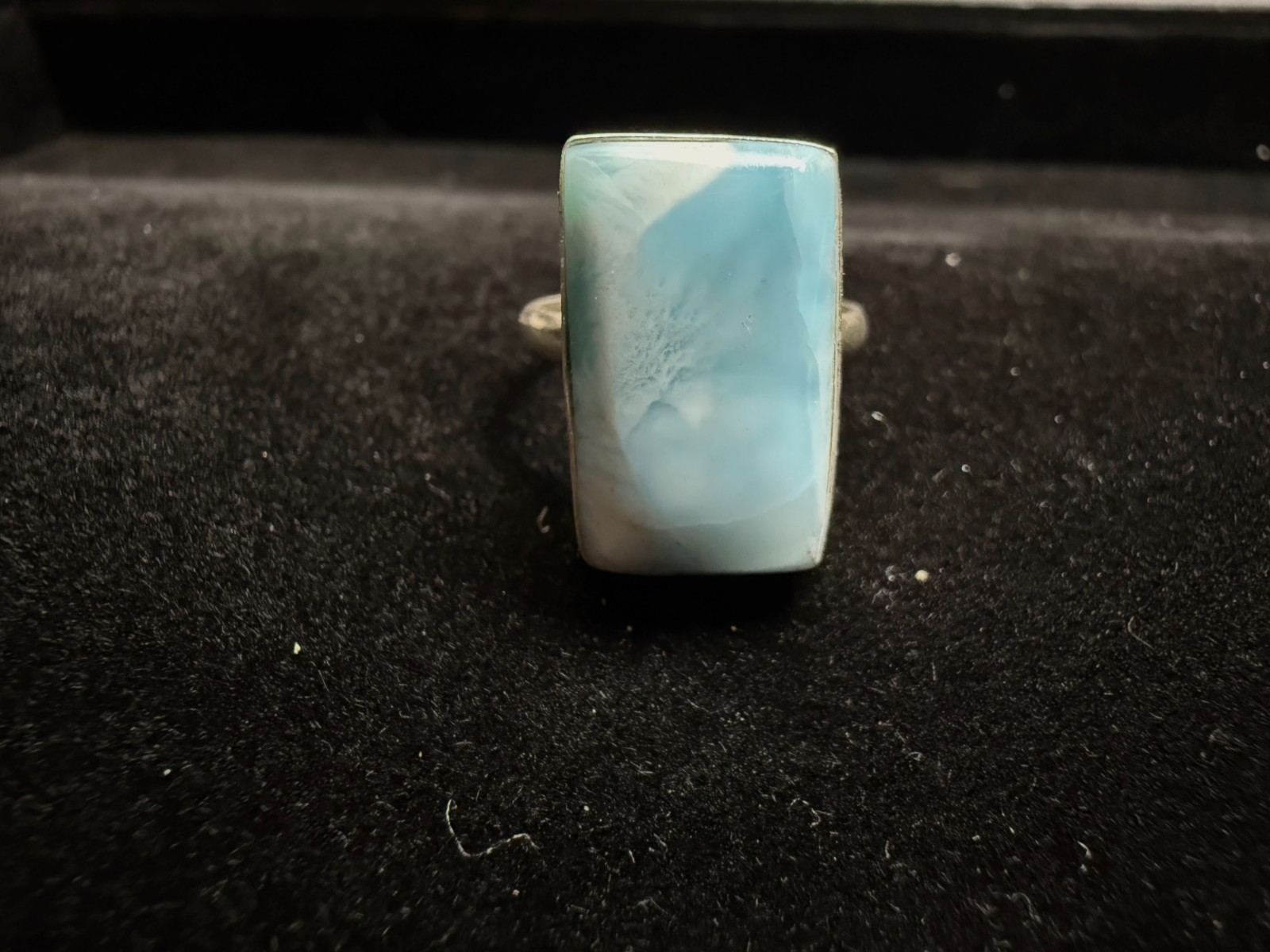 как выглядит Natural Larimar Statement Ring Size 7 925 Sterling Silver Blue Gemstone фото