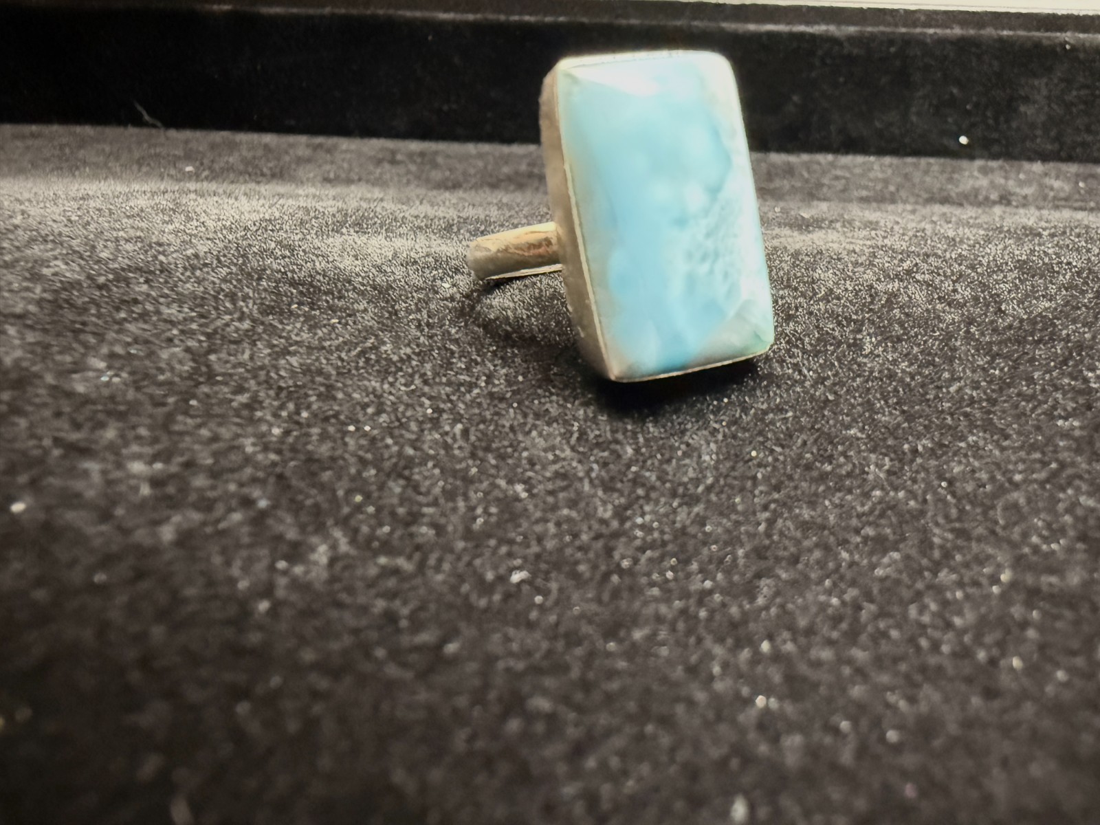 Natural Larimar Statement Ring Size 7 925 Sterling Silver Blue Gemstone