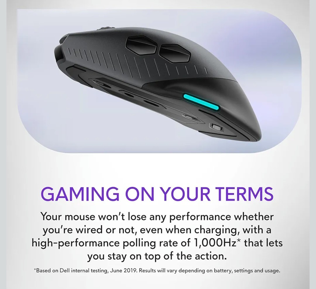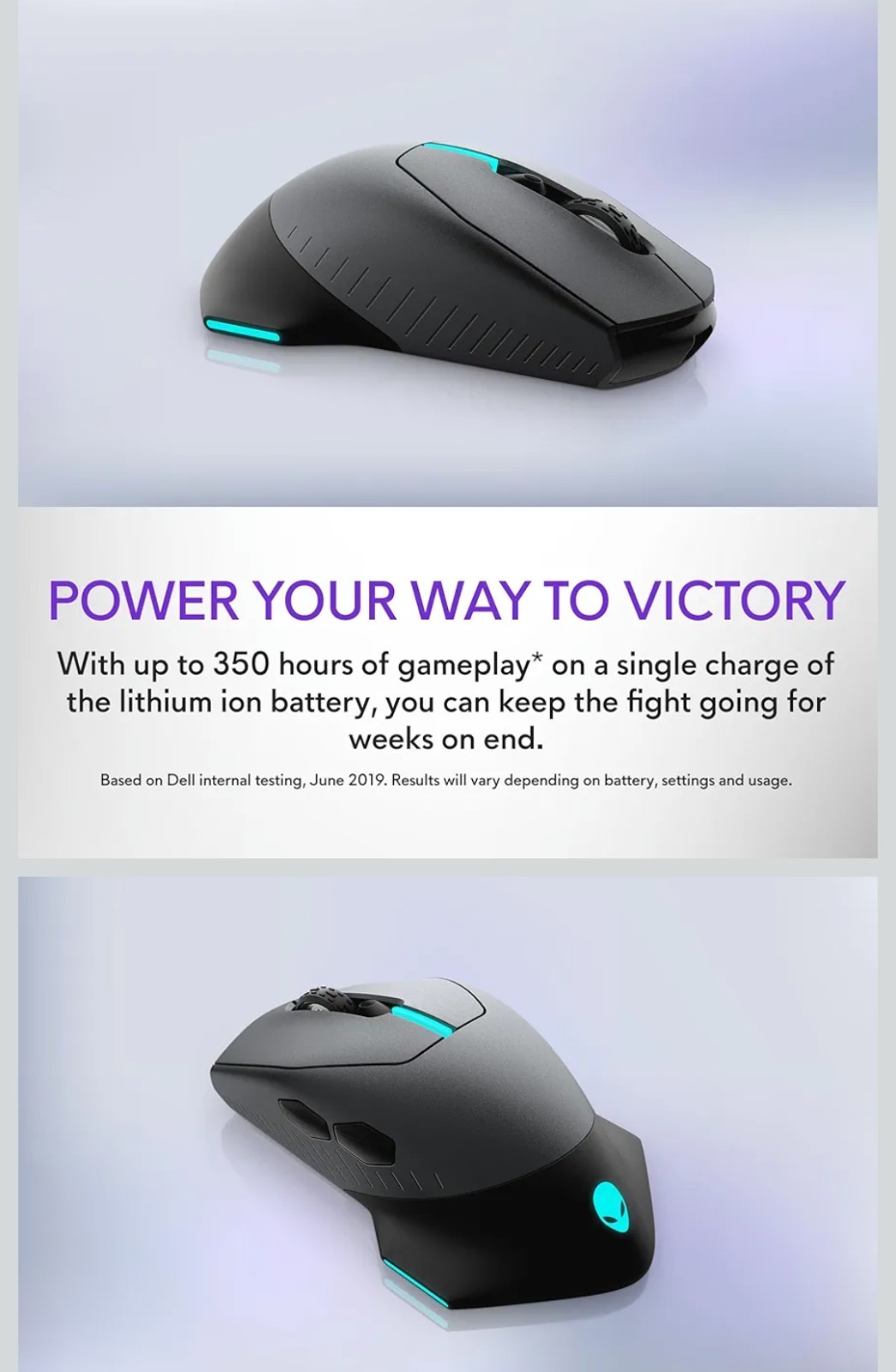 Alienware Wired/Wireless Gaming Mouse AW610M, 16000 DPI Optical Sensor, 350 Hour