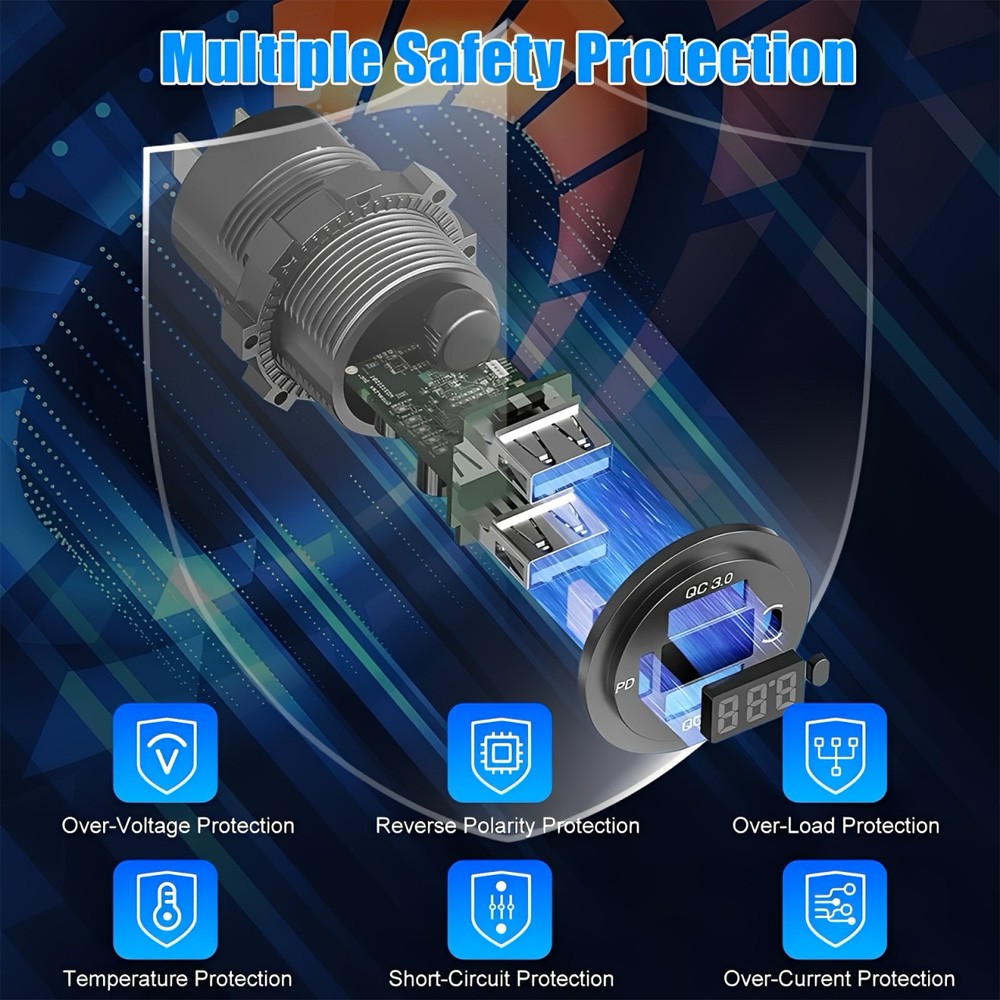 как выглядит 12V-24V PD QC3.0 Dual USB Car Fast Charger Power Socket Outlet LED Voltmeter фото