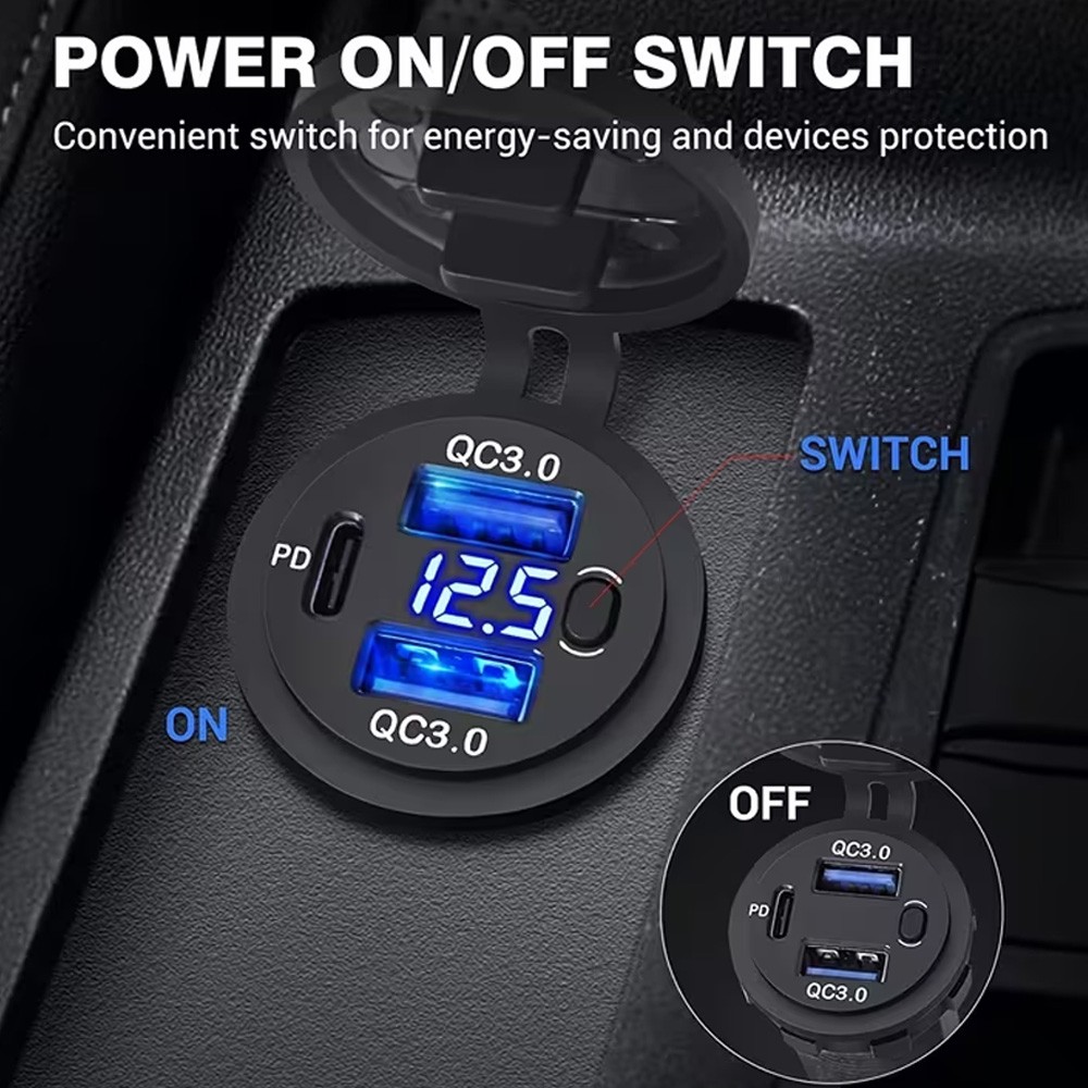 12V-24V PD QC3.0 Dual USB Car Fast Charger Power Socket Outlet LED Voltmeter