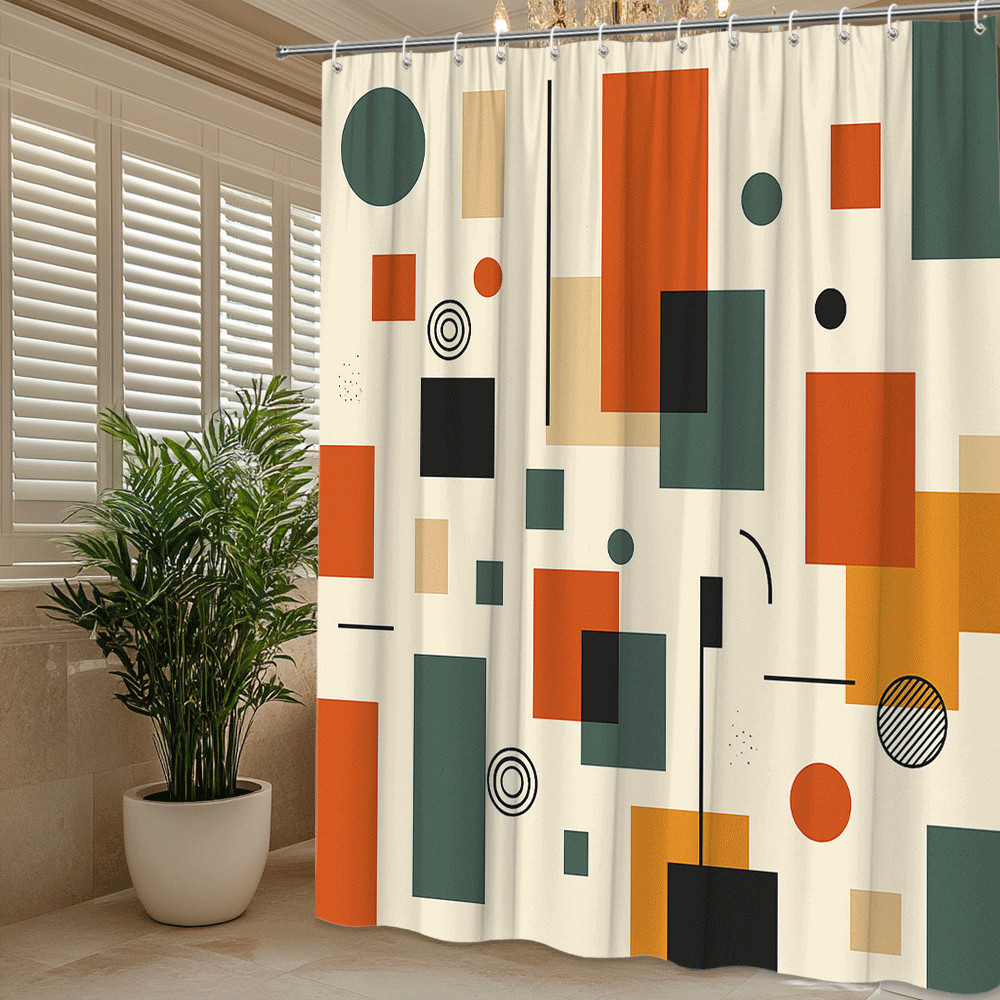 Modern Geometric Shower Curtain in Earthy Tones - Abstract Design
