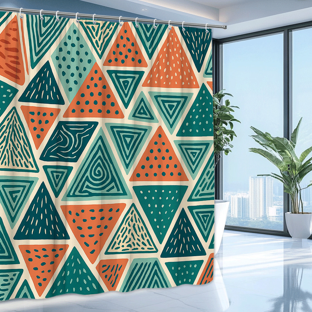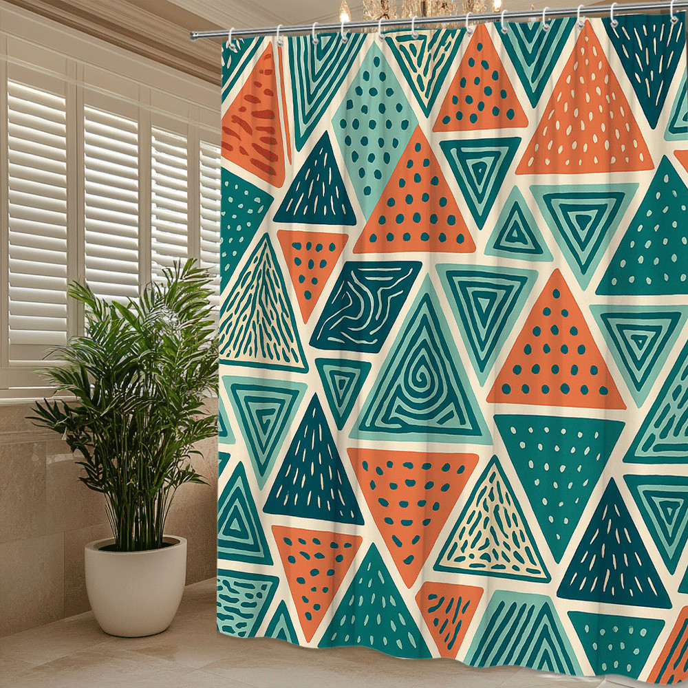 Colorful Triangle Pattern Shower Curtain - Modern Fabric Design