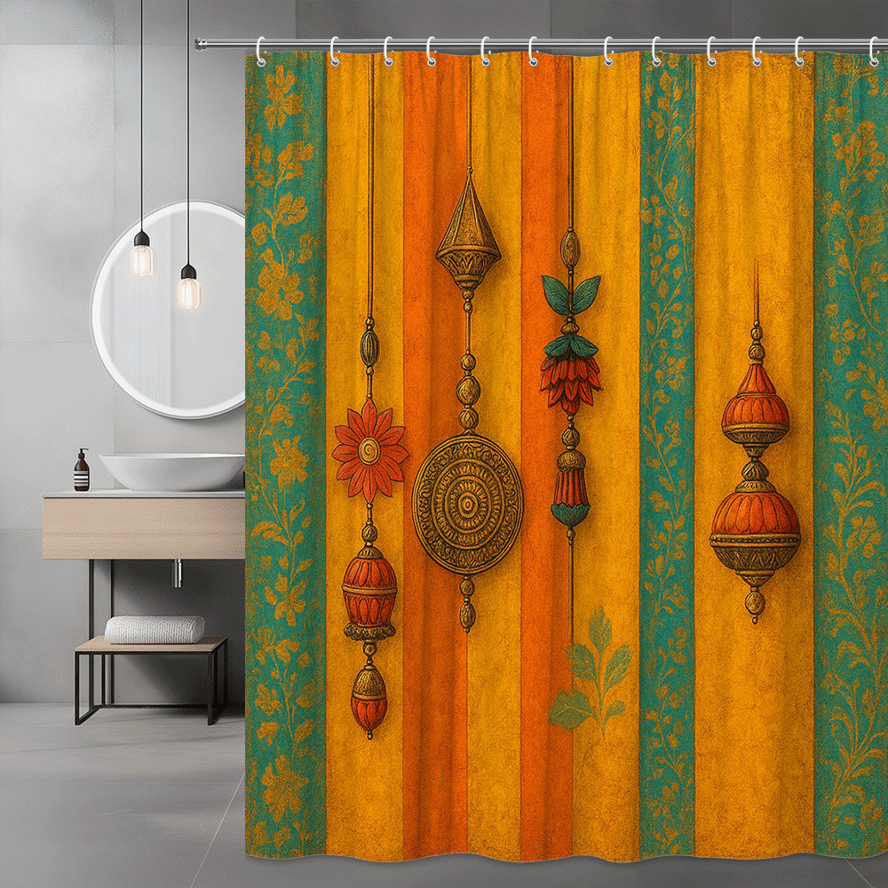 Colorful Boho Shower Curtain with Floral Design and Stripes