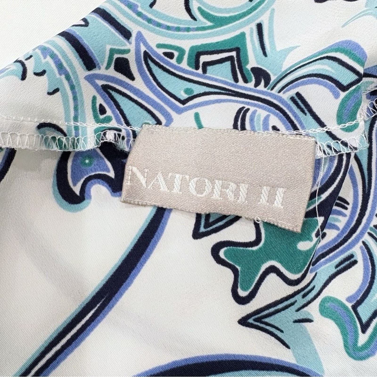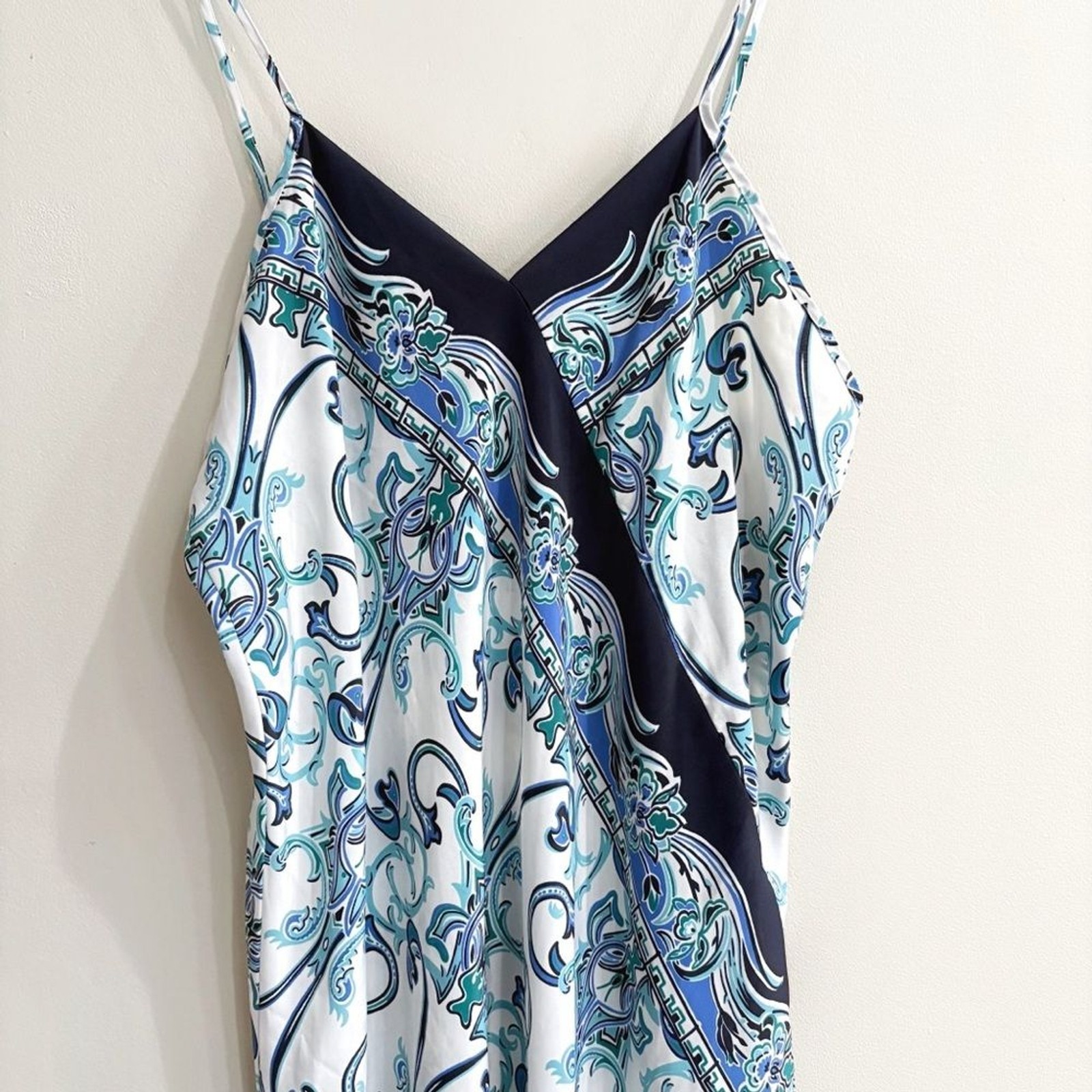 как выглядит Natori Blue Paisley Satin Slip Dress Size Large Designer Nightgown Vintage Y2K фото