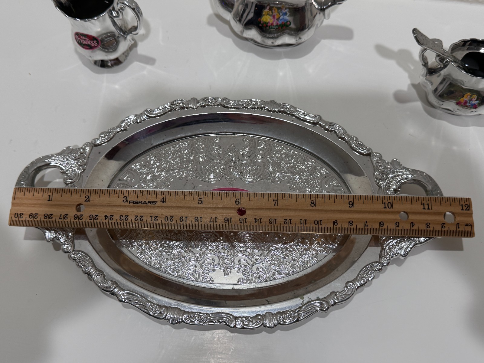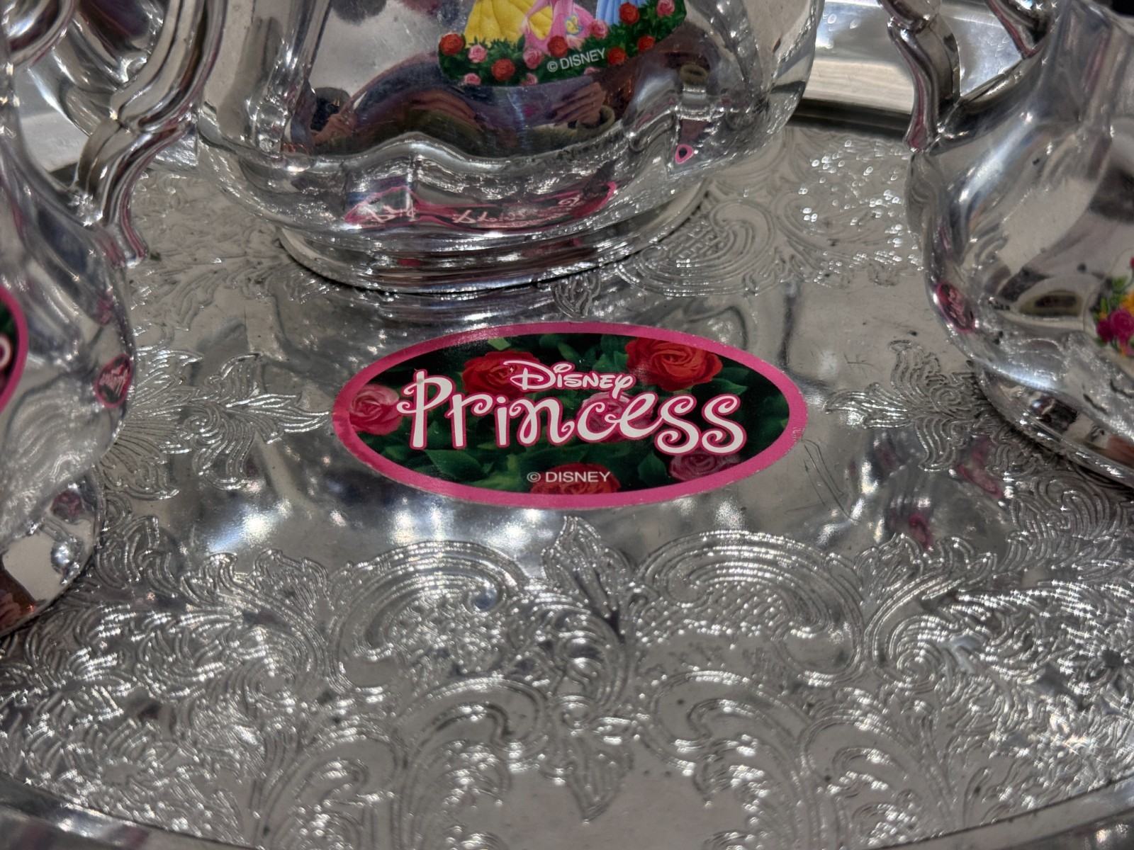 как выглядит Disney Princess Mini Tea Set w/ Silver-Tone Tray  Teapot, Creamer Sugar Bowl фото