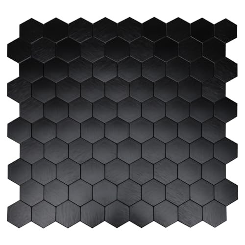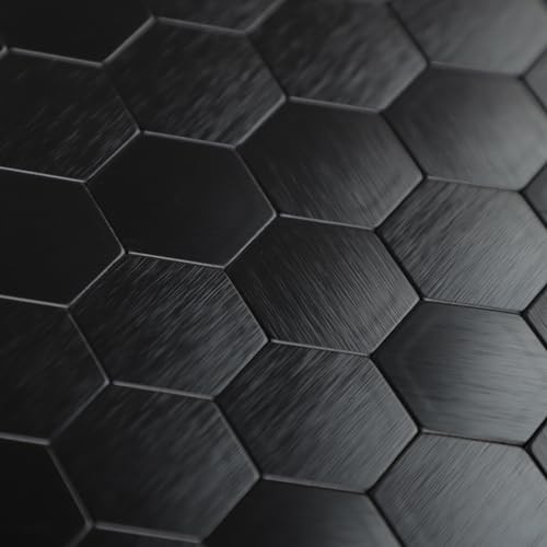 12-Sheet Peel and Stick Backsplash Tile, Hexagon Black Brushed Aluminum