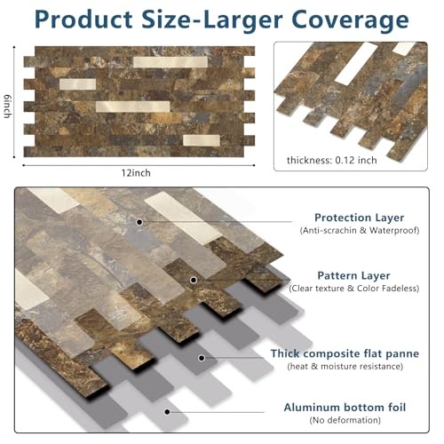 Sheets Peel and Stick Stone Metal Backsplash, PVC Wall Tiles Stick 20 Rustic