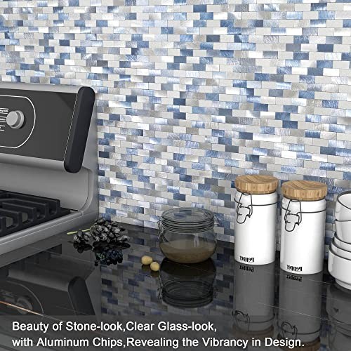 Kitchen Tiles Backsplash Peel and Stick Metal Sticky Brick 10sheets/pack Blue